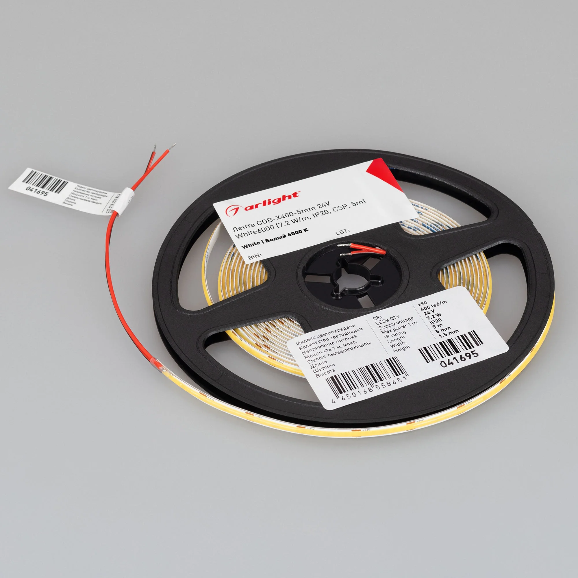 Светодиодная узкая лента сплошного свечения COB серии X400. Светодиоды CSP, 400 шт/м, белая плата шириной 5 мм, скотч 3M. Цвет БЕЛЫЙ 6000K, индекс цветопередачи CRI>90, угол 180°. Питание 24 В, мощность 7.2 Вт/м (36 Вт на 5 м). Размеры 5000х5х1.5 мм. Мин. отрезок 20 мм. Цена за 1 м. Обязательна установка на профиль. Кратность заказа […]