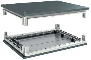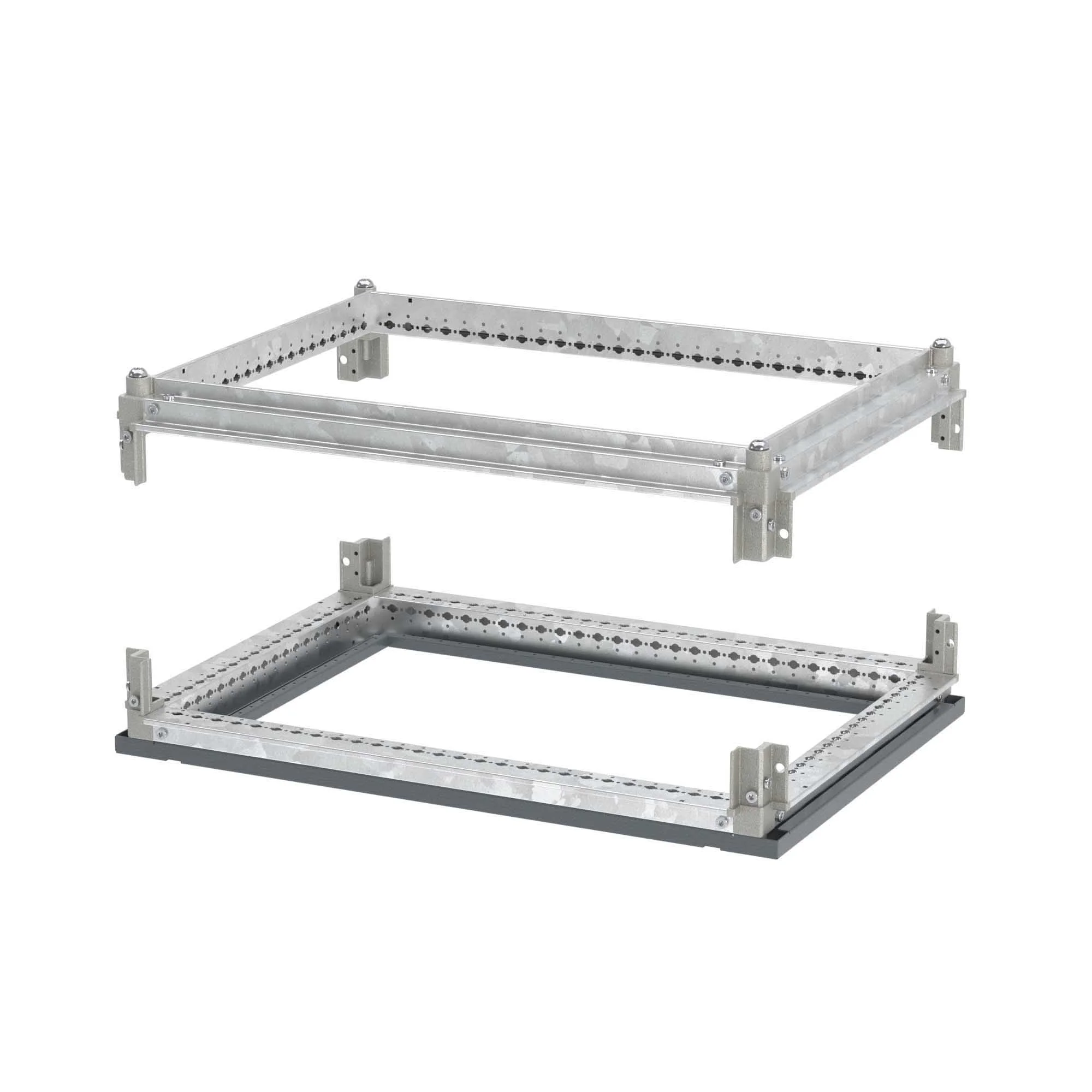 Комплект оцинкованной рамы крыши и дна для соединения с вертикальными стойками и сборки напольных шкафов CQE N шириной 1000 и глубиной 800 мм. Юбка дна окрашена в цвет RAL 7011.