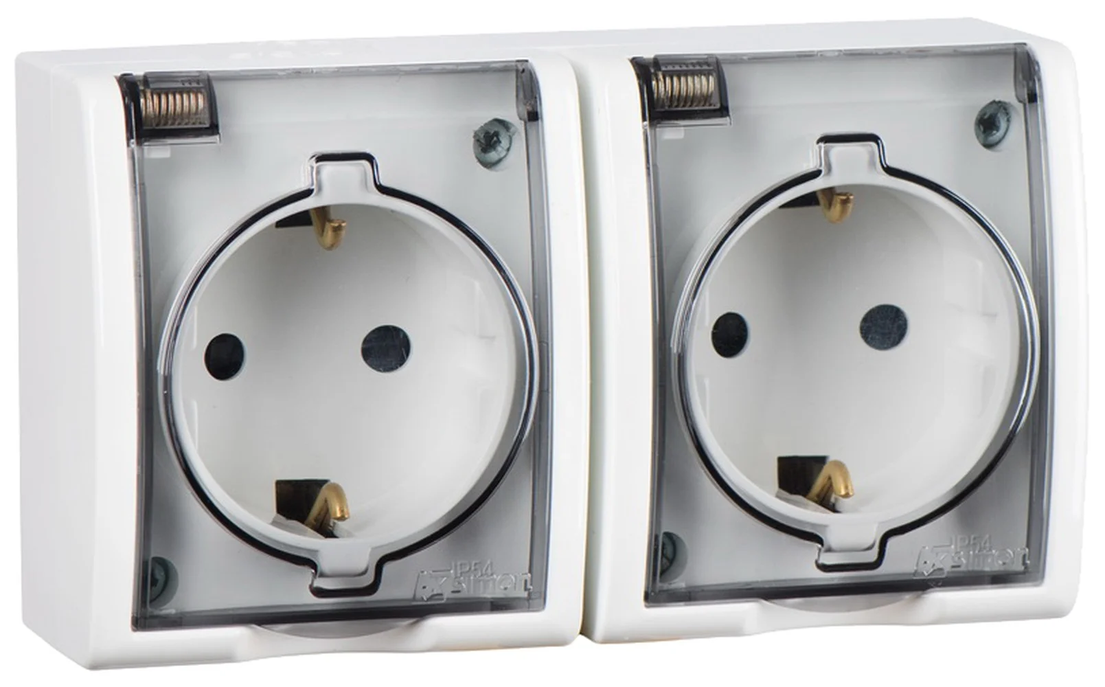 Simon 15 Aqua Бежевая Розетка 1-ая с/з с крышкой с защитными шторками наружная, IP54
