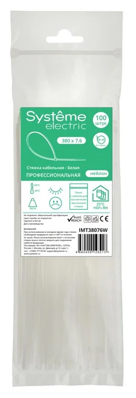 Кабельная стяжка Systeme Electric серии MultiSet в черном цвете предназначена для соединения кабелей и поводов в жгуты и их крепления к элементам строительных конструкций и кабельных лотков. — Широко применяются для организации кабельных трасс в щитовом оборудовании. — Температура эксплуатации: -40…+85°С — поставляется упаковками по 100 штук в пакете с ЗИП-замком и имеет длину 200 […]