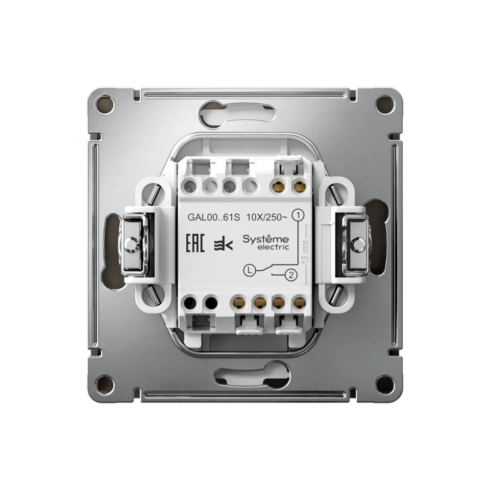 Механизм с быстрозажимными клеммами Systeme Electric (ранее Schneider Electric) серии AtlasDesign в цвете алюминий перекресного перключателя подходит для сетей 250 В, на ток 10 А. С помощью новых быстрозажимных клемм монтаж розеток и выключателей стал намного быстрее. Теперь подключение не требует использования отвертки. Лицевые детали из качественного ABS-пластика, устойчивого к царапинам и УФ-излучению.
