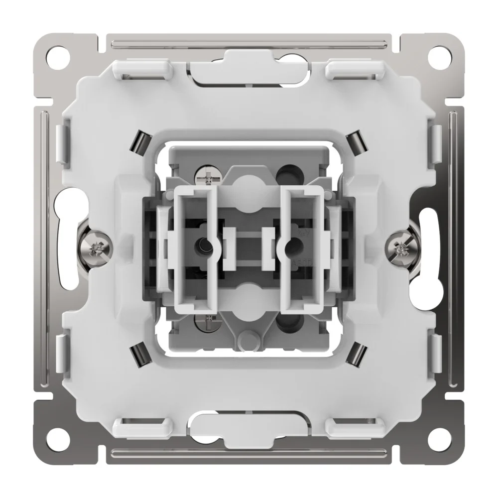 Механизм с быстрозажимными клеммами Systeme Electric (ранее Schneider Electric) серии Glossa (цвет белый) 1-клавишного переключателя подходит для сетей 250 В, на ток 10 А. С помощью новых быстрозажимных клемм монтаж розеток и выключателей стал намного быстрее. Теперь подключение не требует использования отвертки. Выполнен из материала PС+ASA, стойкого к УФ-излучению и появлению царапин.