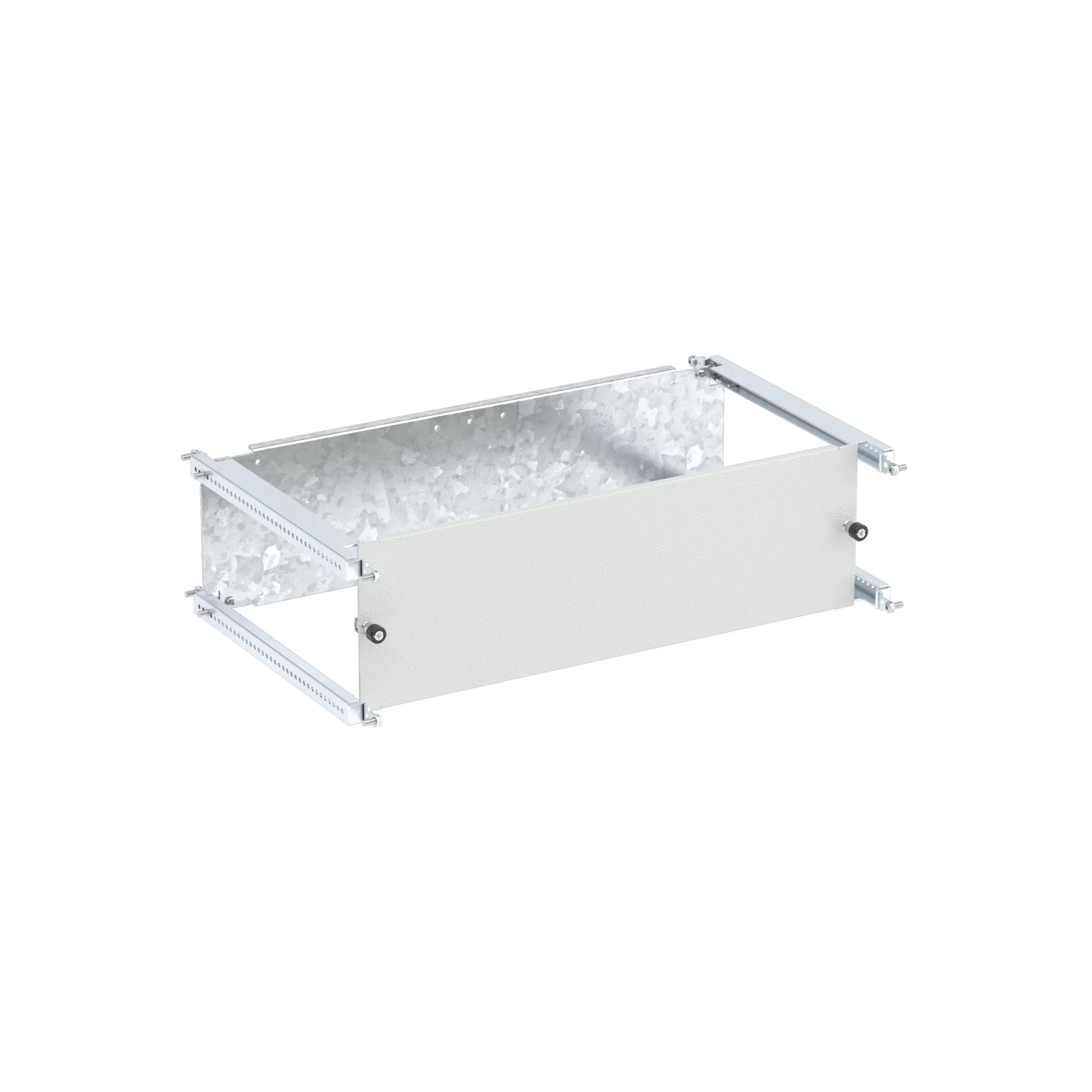 Комплект элементов с внутренней лицевой панелью и винтовым креплением для универсальной установки активного оборудования различных производителей для шкафа шириной 600 мм, высота блока 300 мм.