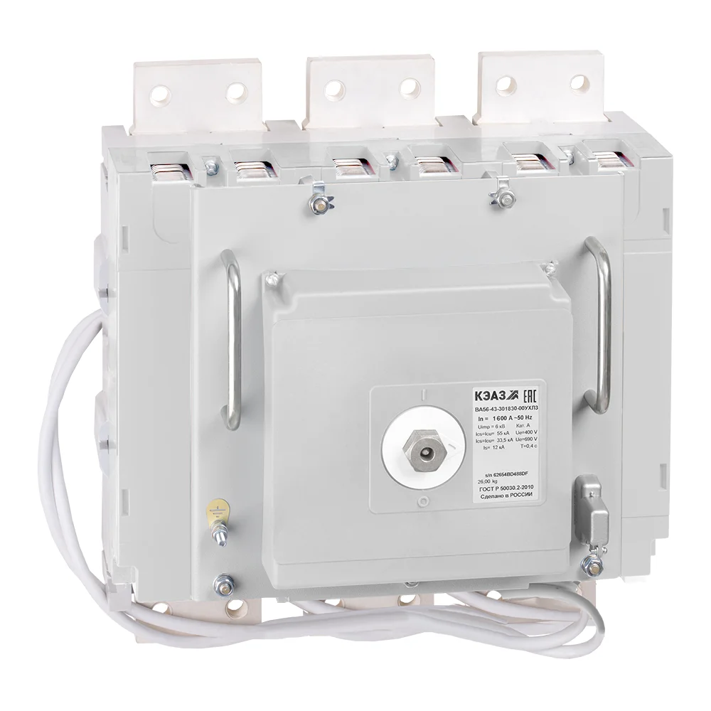 Блочный автоматический 3 полюсный выключатель переменного тока с предельной коммутационной способностью при переменном токе 100 кА на номинальный ток 1000 А .