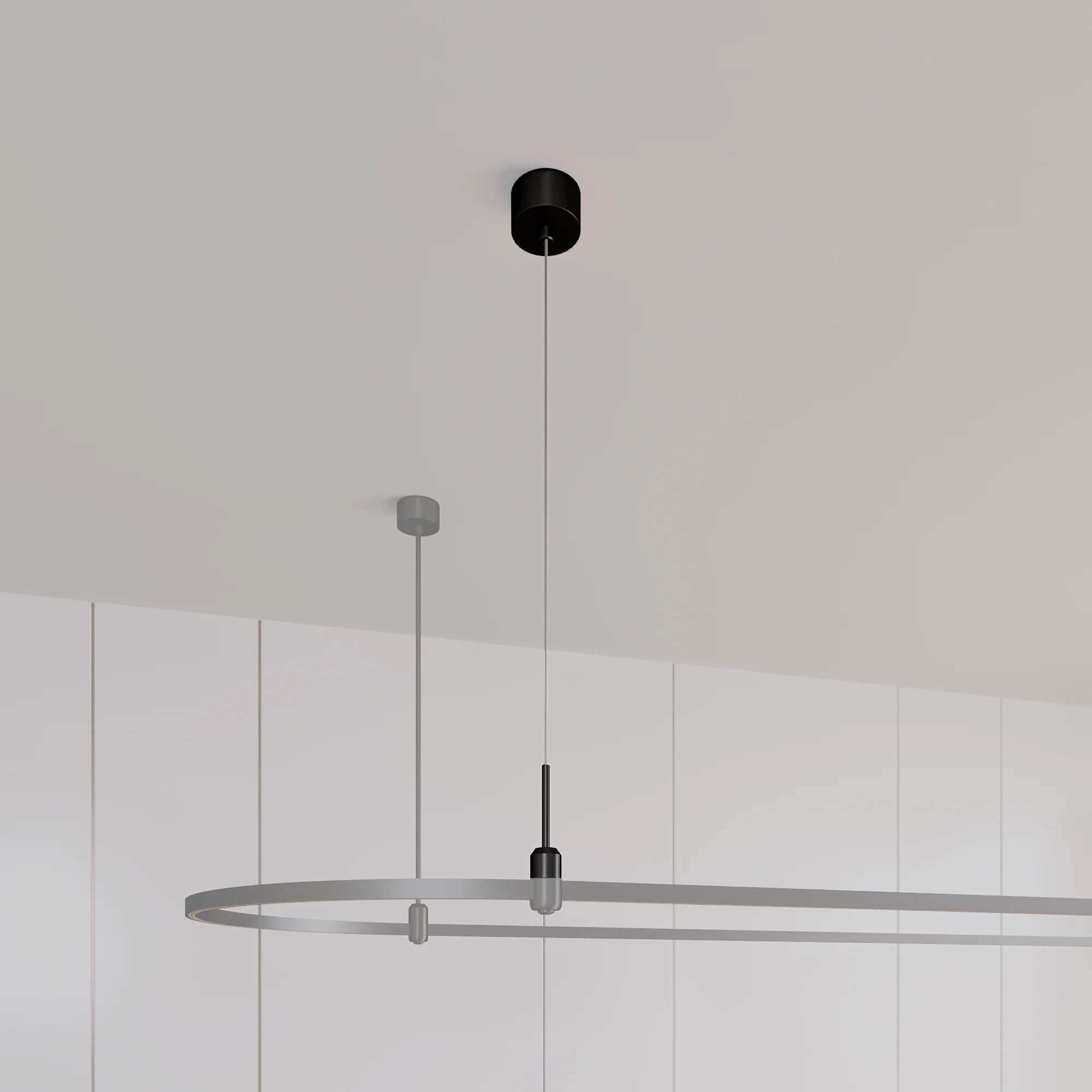 Тросовый подвес с пластиковой чашкой Ø36×47мм для треков 4TR. Длина троса 1.5 м. Цвет черный. Выдерживает вес максимум 15 кг. В комплекте трос, чаша, скоба и крюк. Совместим только с шинопроводом серии D3P.