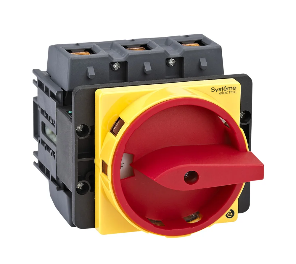 Выключатель-разъединитель MSD на номинальный ток 125 А применяется для коммутации силовых электрических цепей активной, индуктивной или смешанной нагрузок, может использоваться для включения и отключения двигателей категорий применения AC–3 и DC–3. Может применяться в качестве главного и аварийного выключателя-разъединителя. 3-полюсное исполнение с красной поворотной рукояткой с возможностью блокировки навесным замком, монтаж на дверцу.