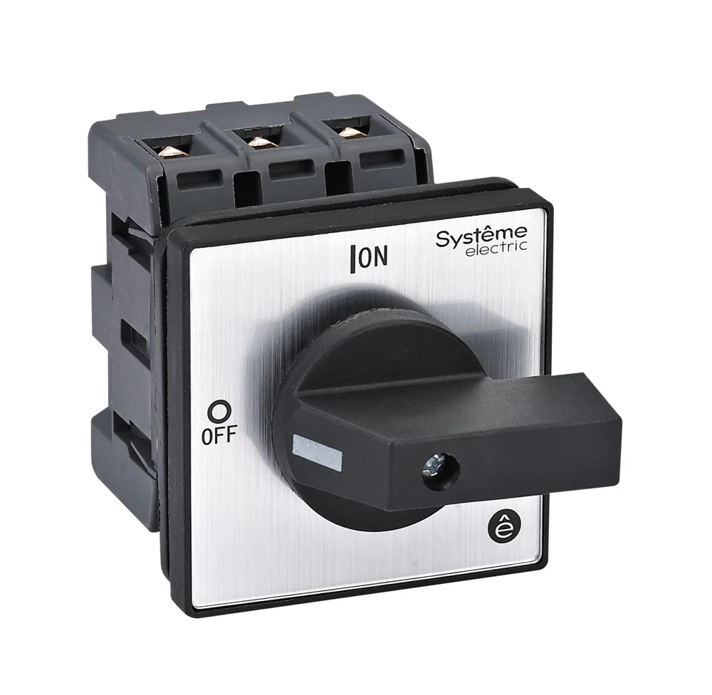 Выключатель-разъединитель MSD на номинальный ток 20 А применяется для коммутации силовых электрических цепей активной, индуктивной или смешанной нагрузок, может использоваться для включения и отключения двигателей категорий применения AC–3 и DC–3. 3-полюсное исполнение с черной поворотной рукояткой с монтажом на дверцу.