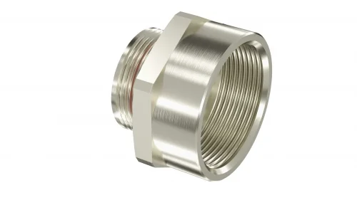 Взрывозащищенный Ex d e переходник. Тип А. «наруж.резьб» М50х1,5 — «внутр.резьб» M32х1,5. Никелированная латунь. IP66/67/68. Используется для перехода на различные типоразмеры резьб.