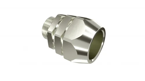 Взрывозащищенная Ex e соединительная втулка. М20×1,5. Никелированная латунь. IP66/67. Используется для соединения жестких стальных труб одного диаметра с наружной резьбой