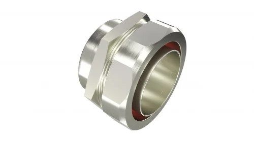 Взрывозащищенная Ex e муфта труба-коробка. DT 50 мм. M50x1,5.Никелированная латунь. IP66/67. Используется для герметичного ввода стальной трубы в корпус оборудования, шкафа, щитка, клеммной коробки, поста управления.