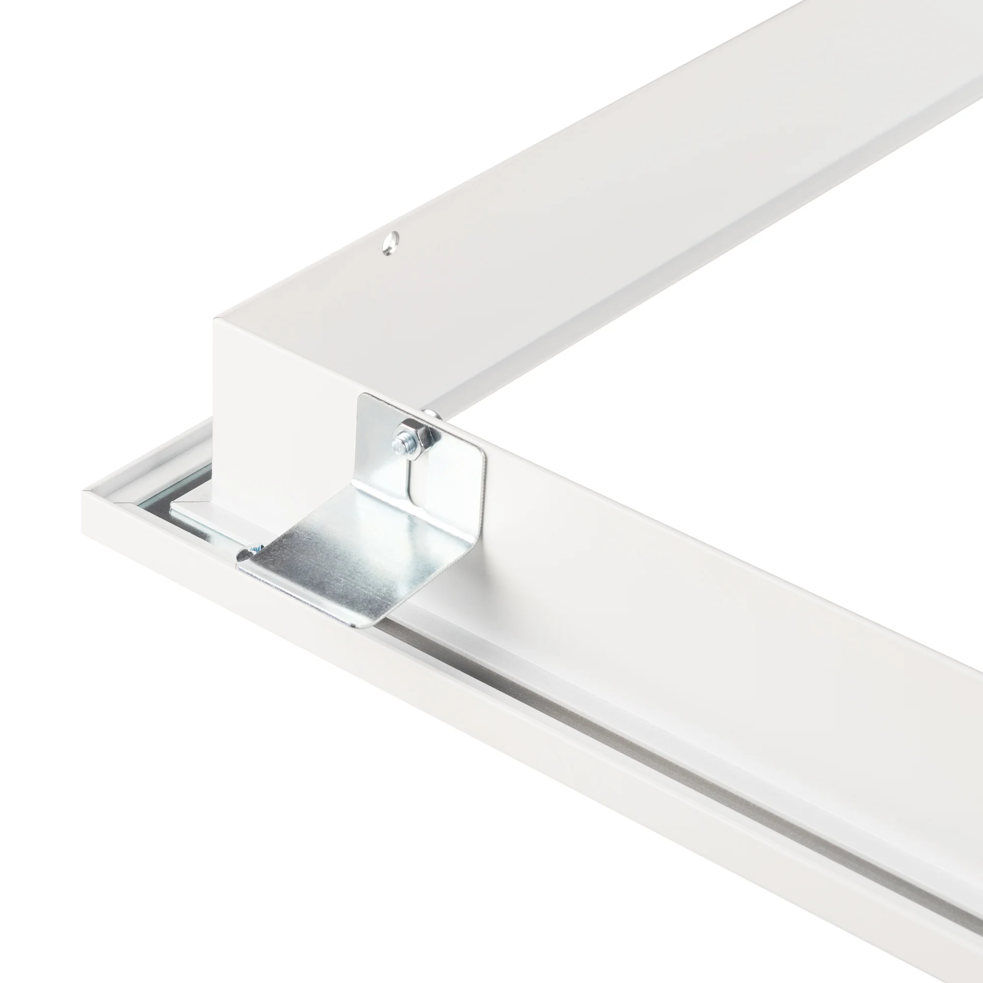 Белая рамка для накладной установки панелей 600х600х30 на потолок или стены. Корпус — алюминий. Поставляется в разобранном виде. Размеры ДxШxВ 600x600x68мм.