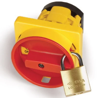 Желтая площадка и красн. ручка, 48х48, отв. 22 мм