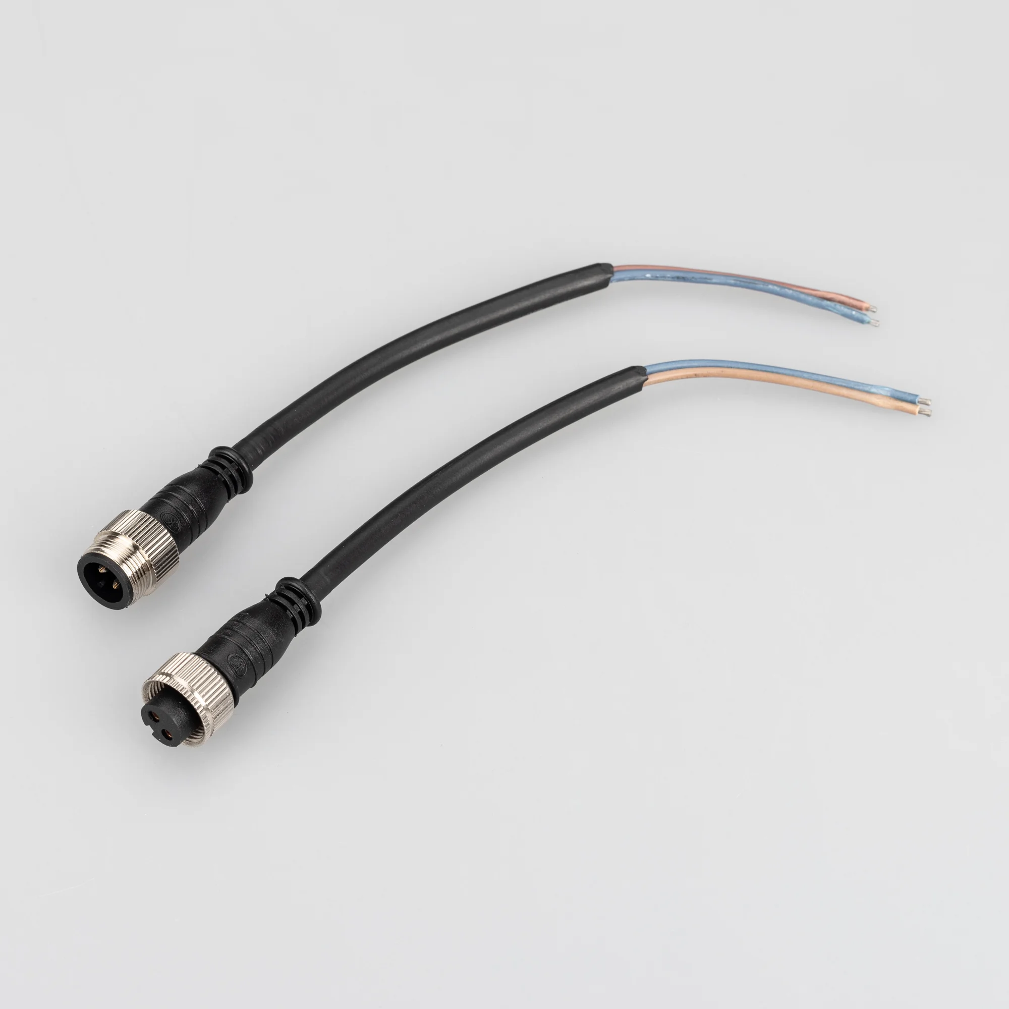 Водонепроницаемый IP67 прямой коннектор для соединения светильников ART-LUMILINE. Цвет черный. Длина 2000мм, сечение 0.75мм2 Один конец — male коннектор 2pins Ø15, другой конец- female коннектор 2 pins Ø15