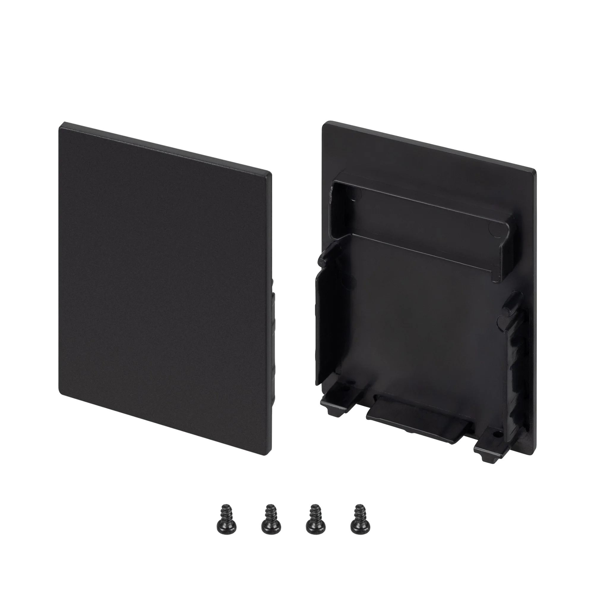 Пара черных заглушек для профиля SL-LINE-4050-3L-2000. В комплекте 2 глухие заглушки для выступающей установки экрана (положение high). Цена за комплект.