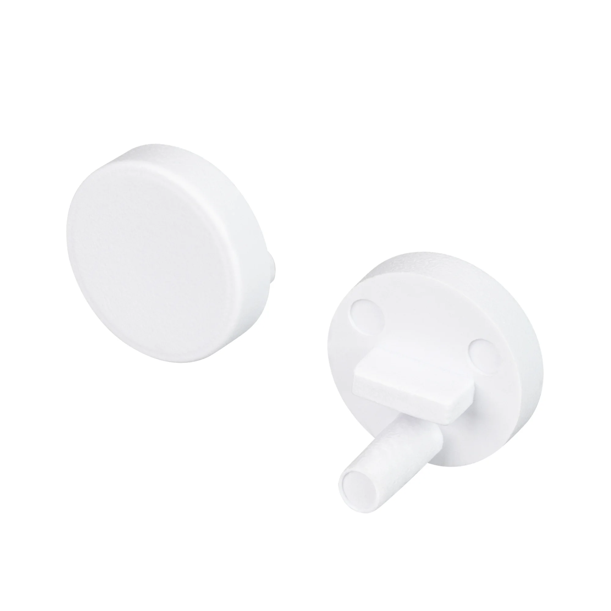 Пластиковая глухая заглушка для профиля ARH-ROUND-D20-DUAL. Цвет белый матовый. В комплекте 2 заглушки без отверстия. Цена за комплект.