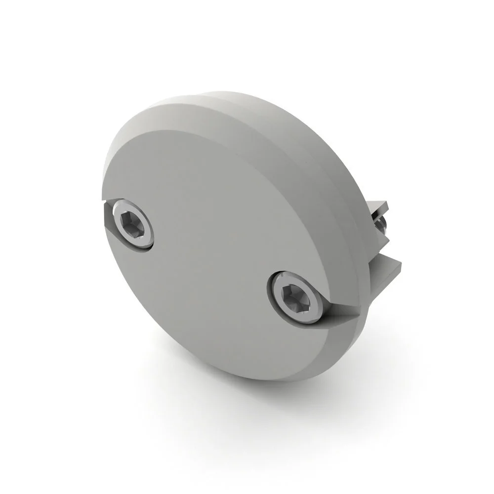 Серые глухие заглушки (комплект 2 шт.) для профиля ROUND-D10.5. Материал — пластик. Цена за комплект.