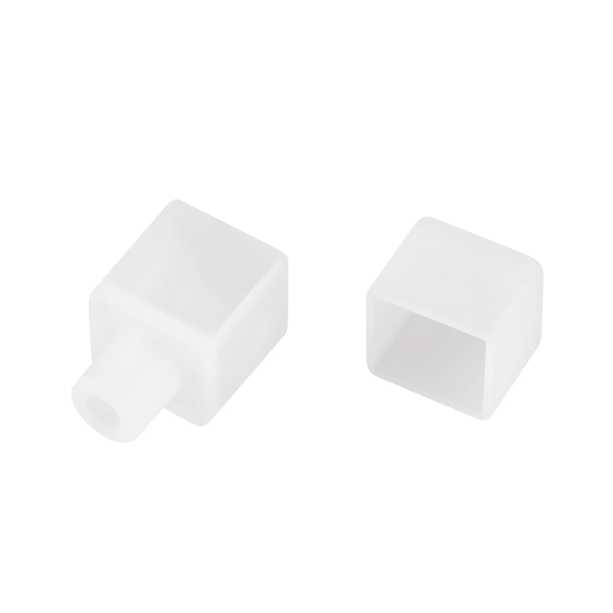 Комплект силиконовых заглушек для гибкого неона MOONLIGHT, сечение 16х16 мм. В комплекте заглушка с выводом под кабель питания и глухая заглушка. Использовать с герметиком. Габариты 20x20x15 мм.