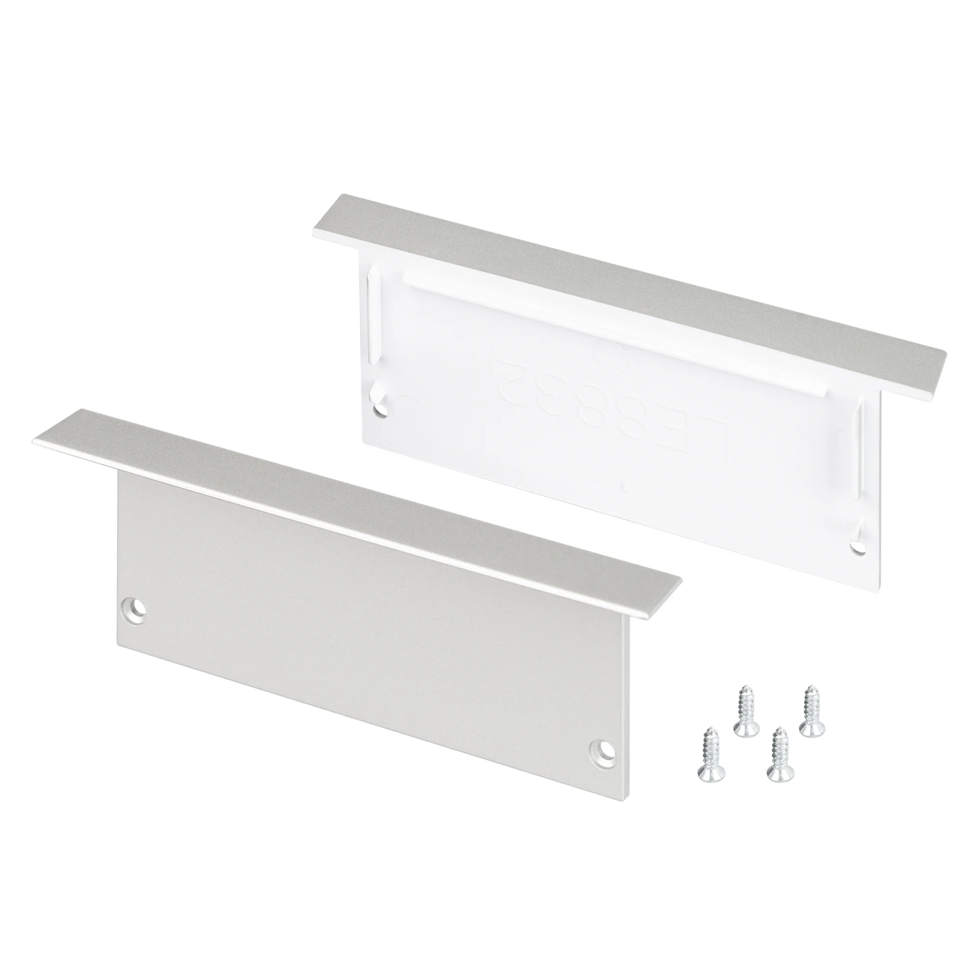 Комплект заглушек для профиля KLUS-POWER-W50-FS. Цвет — серебристый. В комплекте 2 заглушки и 4 шурупа, цена за комплект.