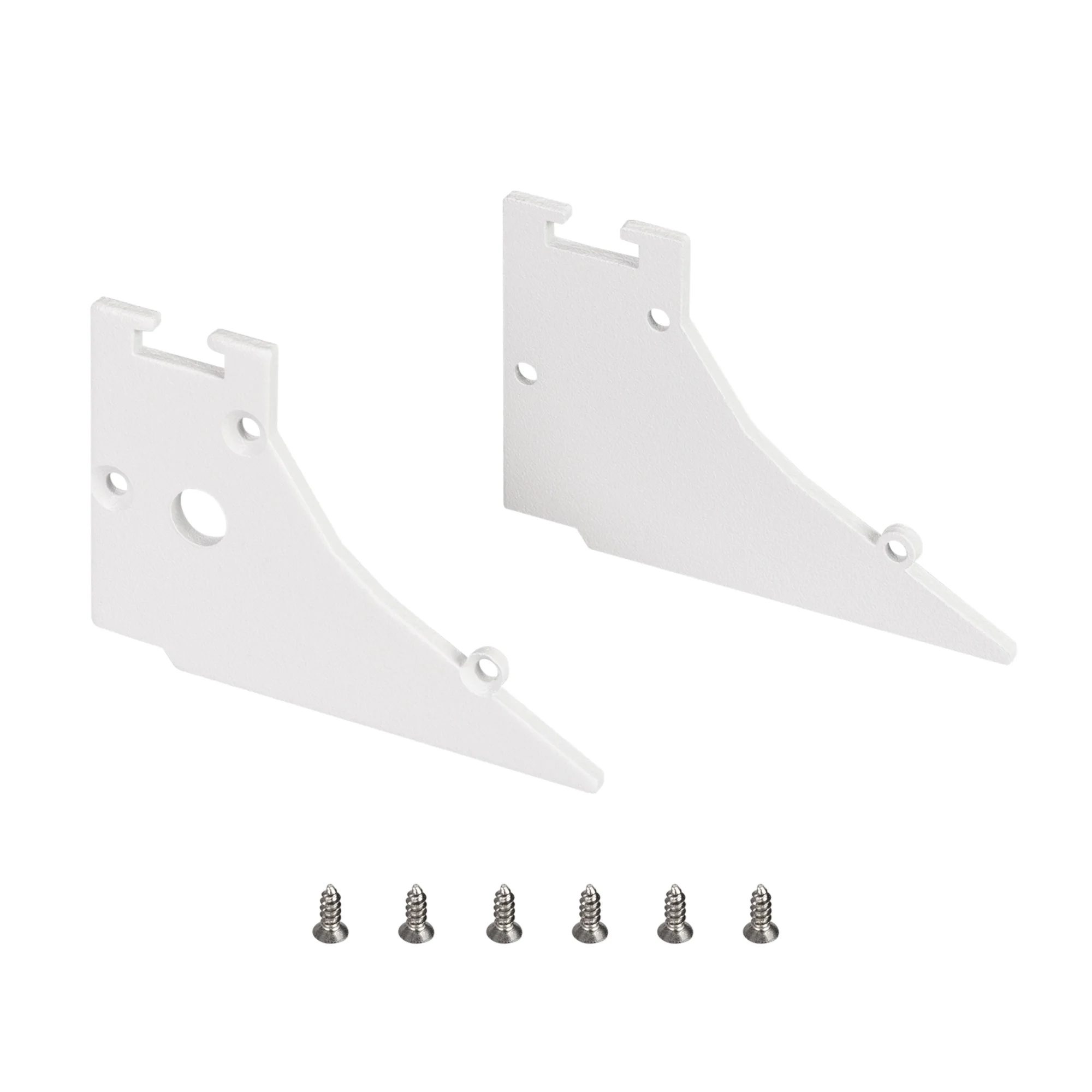 Комплект заглушек для профиля FANTOM-W45-BEVEL. Материл — алюминий. Цвет — белый. В комплекте 2 заглушки (левая с отверстием — 1 шт., правая без отверстия — 1 шт.) и 6 шурупов. Цена за комплект.