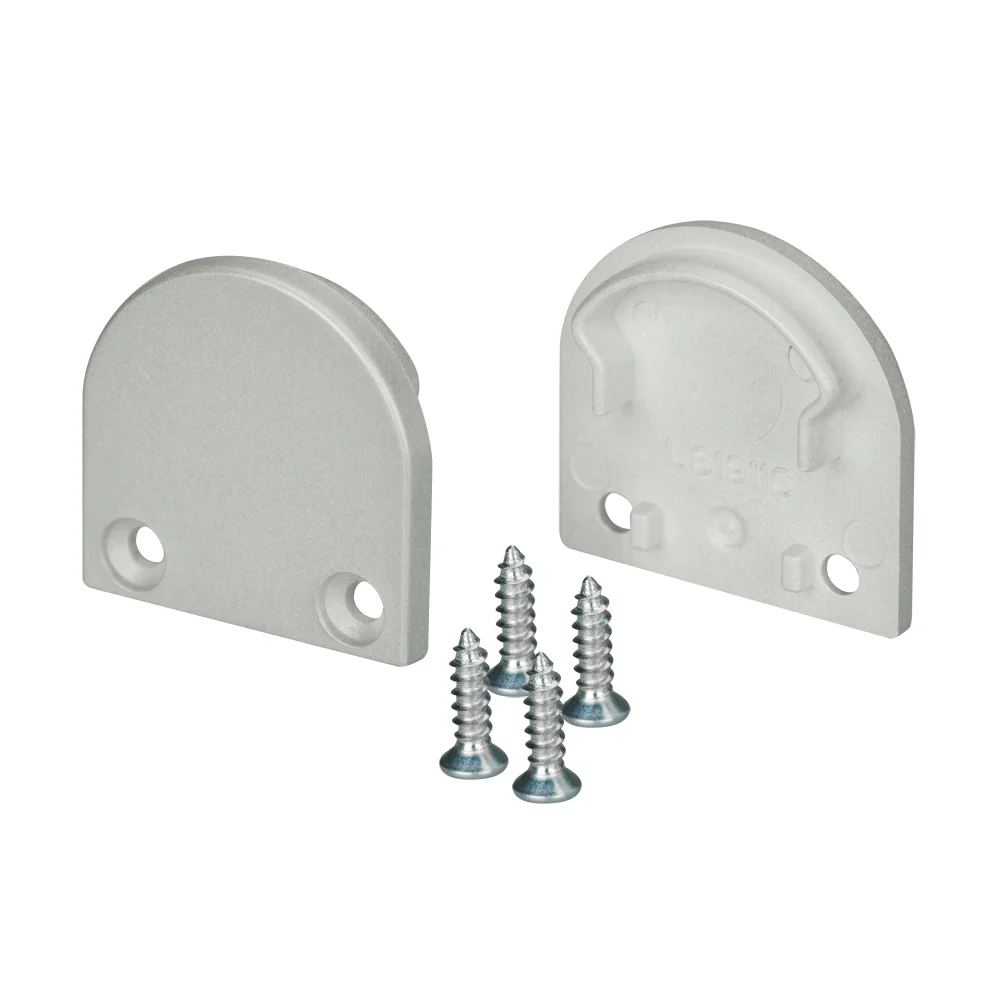 Серые полукруглые глухие заглушки (комплект 2 шт.) для профиля MIC-FS. Материал — пластик. Цена за комплект.