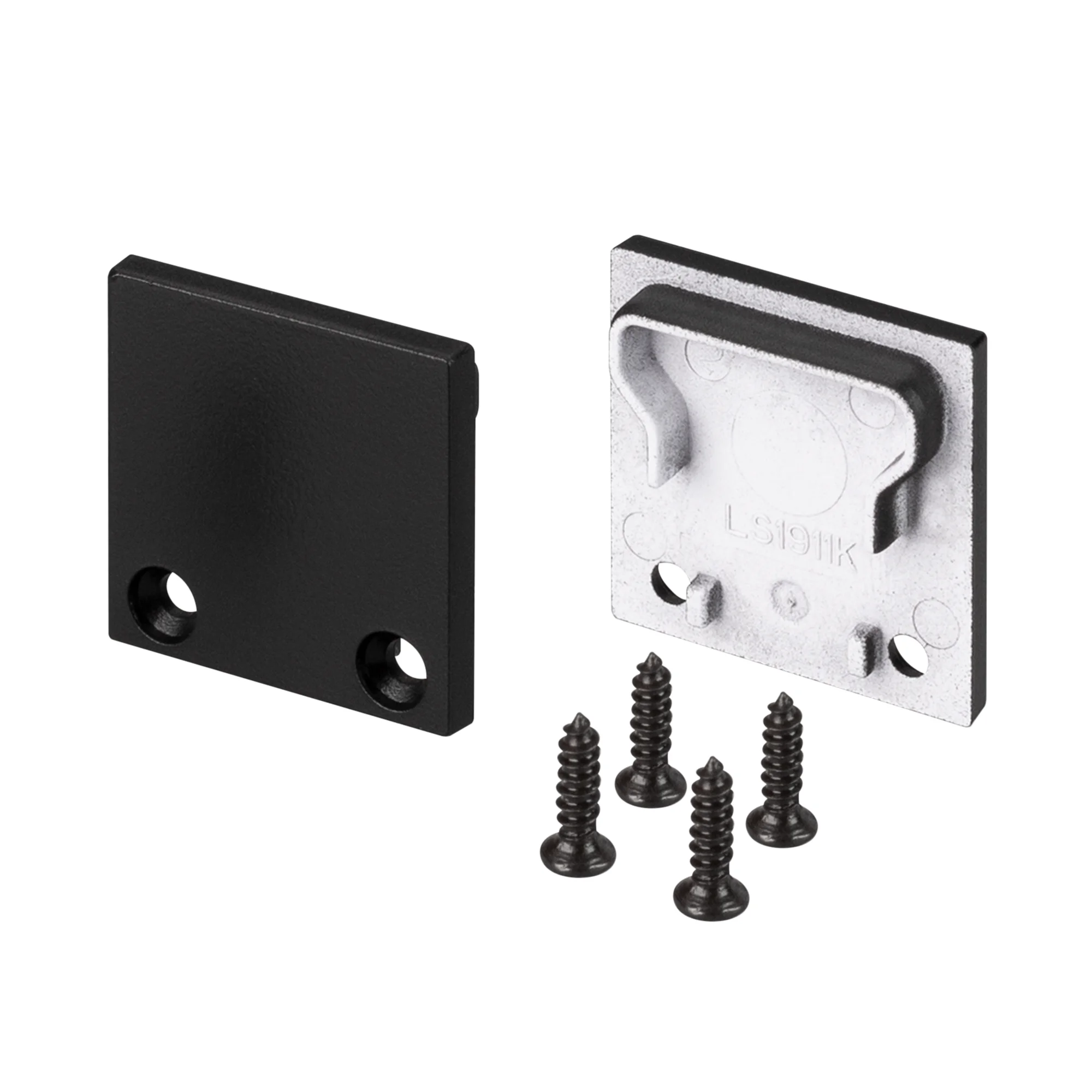 Пара заглушек для профиля LINE-S-3535. Цвет — черный. В комплекте 2 заглушки, 8 шурупов. Цена за 1 комплект.