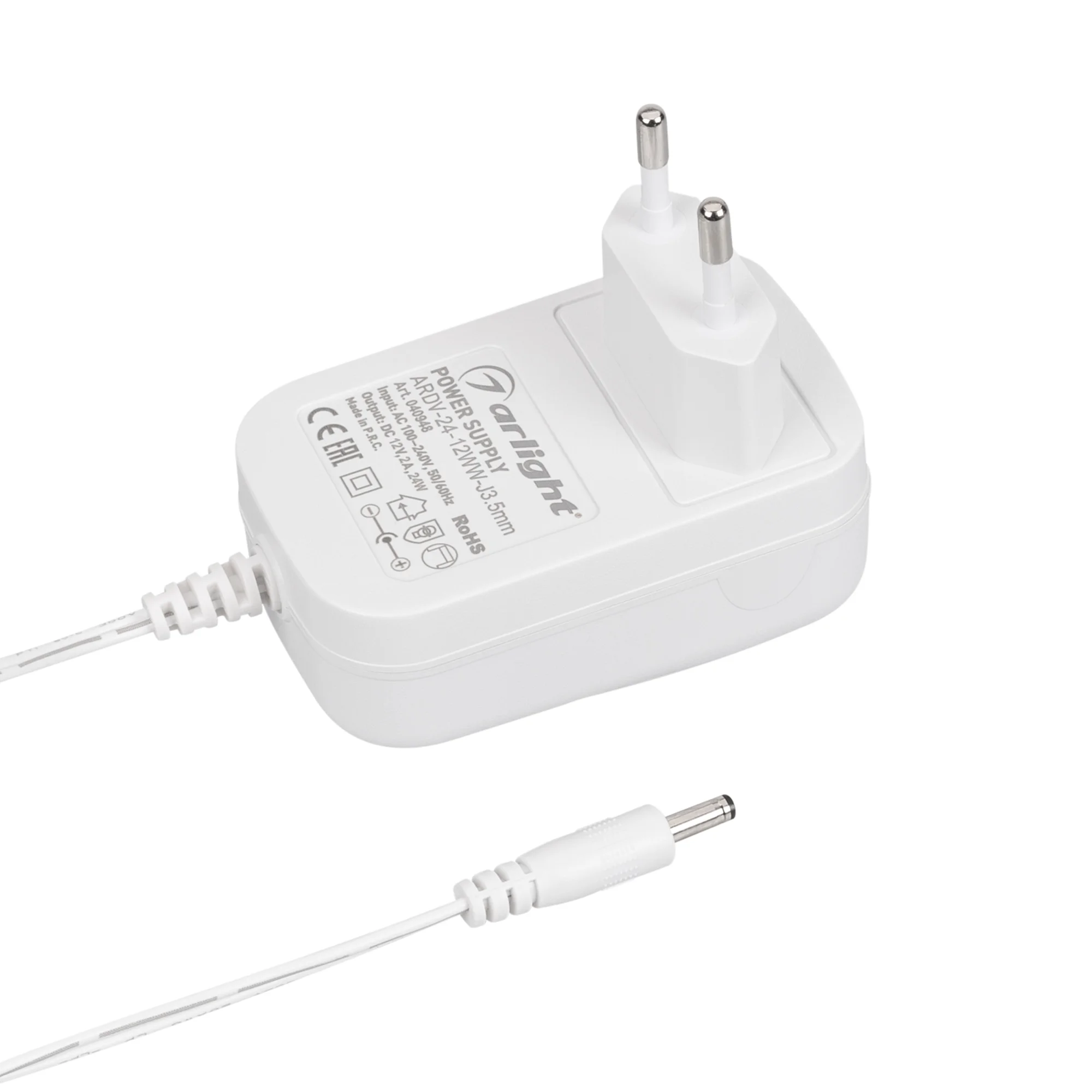 Сетевой адаптер с гальванической развязкой для светодиодных изделий. Входное напряжение 100-240 VAC. Выходные параметры: 12 В, 2 А, 24 Вт. Негерметичный пластиковый корпус IP 20. Габаритные размеры длина 75 мм, ширина 45 мм, высота 32 мм (размер без вилки). Длина кабеля 1.5 м, коннектор 3.5×1.3×10мм. Гарантийный срок 3 года.