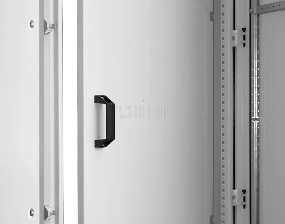 Реверсивная дверь с четырёхточечным штанговым замком и усиливающей рамой с отверстиями для крепления кабельных каналов, с углом открывания 225 гр. Предназначена для установки на фронтальную и/или тыльную часть рамы шкафов MPx. Идет в комплекте поставки стандартного шкафа MPS. Используется для компоновки шкафа индивидуальной сборки, также может быть заказана отдельной позицией.