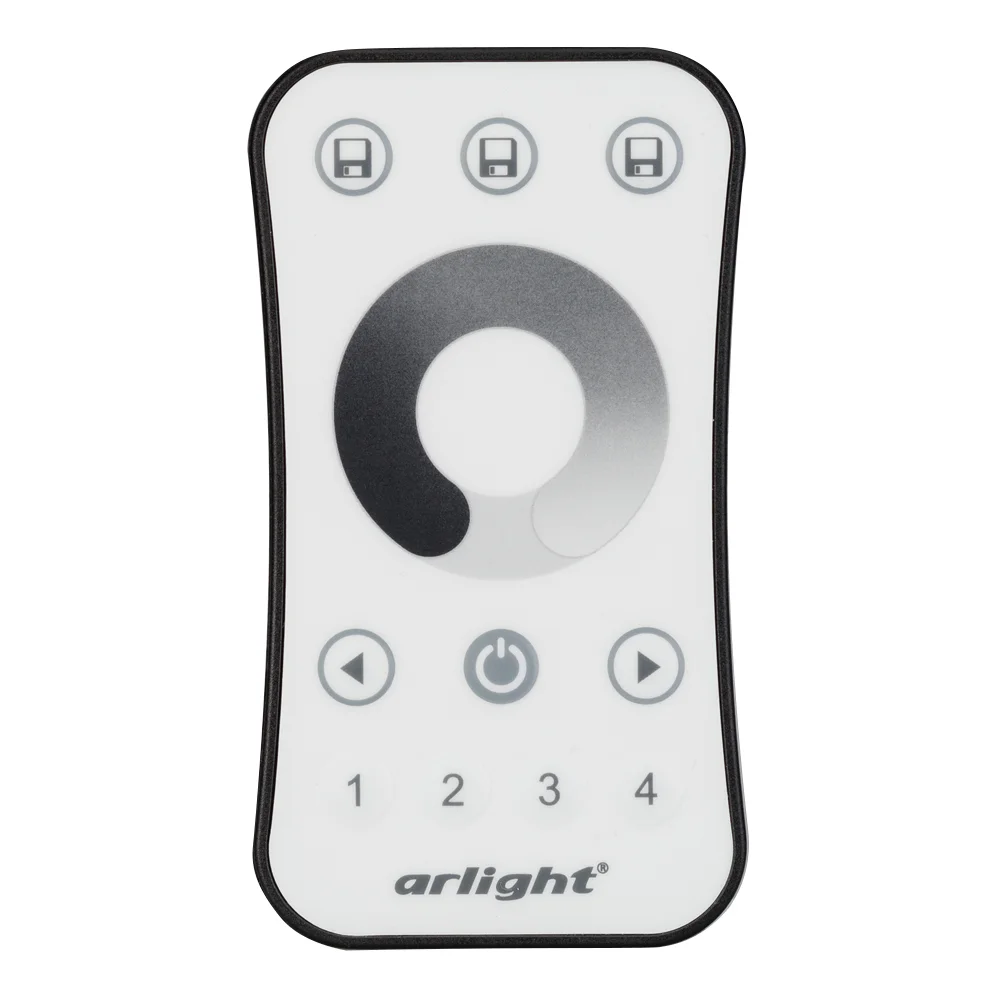Кнопочный радиопульт с сенсорным кольцом 2.4 ГГц белого цвета для управления одноцветным (DIM) источником света. 4 зоны управления, управление яркостью с помощью сенсорного кольца. Питание 3VDC (CR2032). Габариты 107×58.5×9 мм. Управляет контроллерами и панелями серии SMART (поставляются отдельно). Настенные держатели приобретаются отдельно (см. аксессуары).