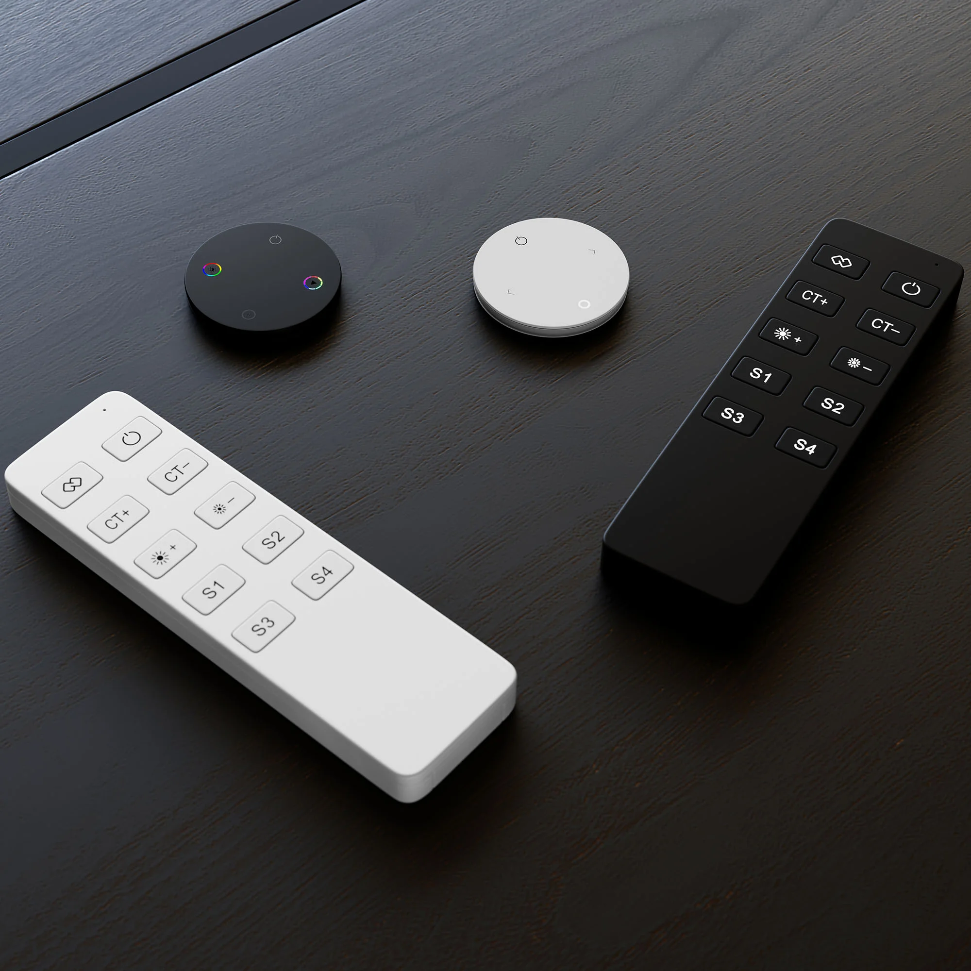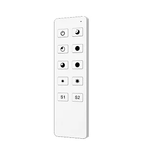 Кнопочный радиопульт 2.4 ГГц чёрного цвета для управления мультибелыми (MIX) источниками света. 1 зона управления. Питание 3VDC (CR2032). Габариты 75x75x18 мм. Изготовлен из пластика с покрытием, защищающим от загрязнения. Магнитная основа. Управляет контроллерами и панелями серии SMART (поставляются отдельно).