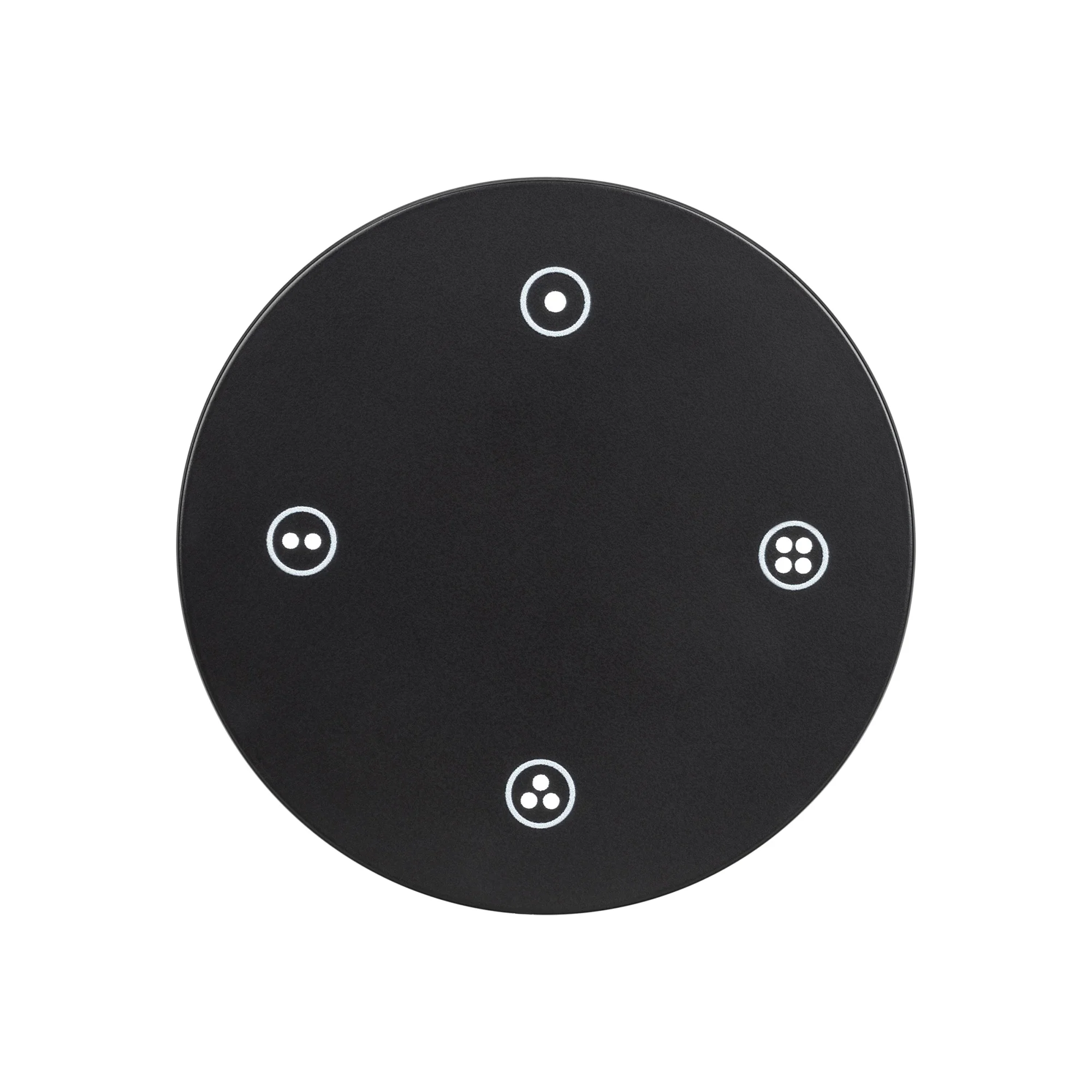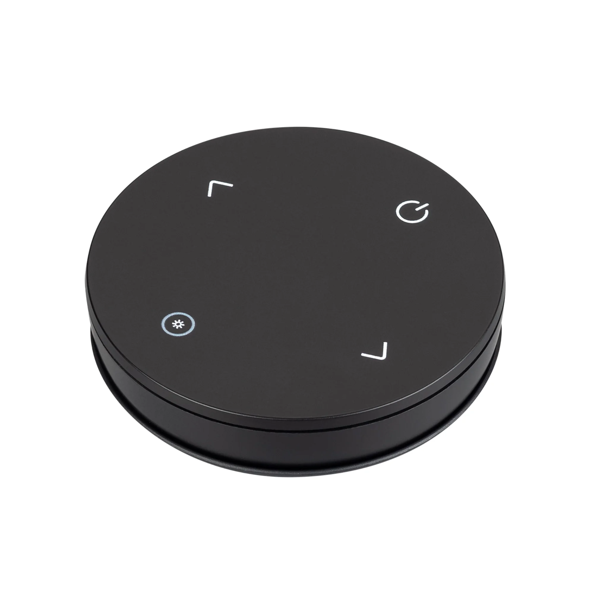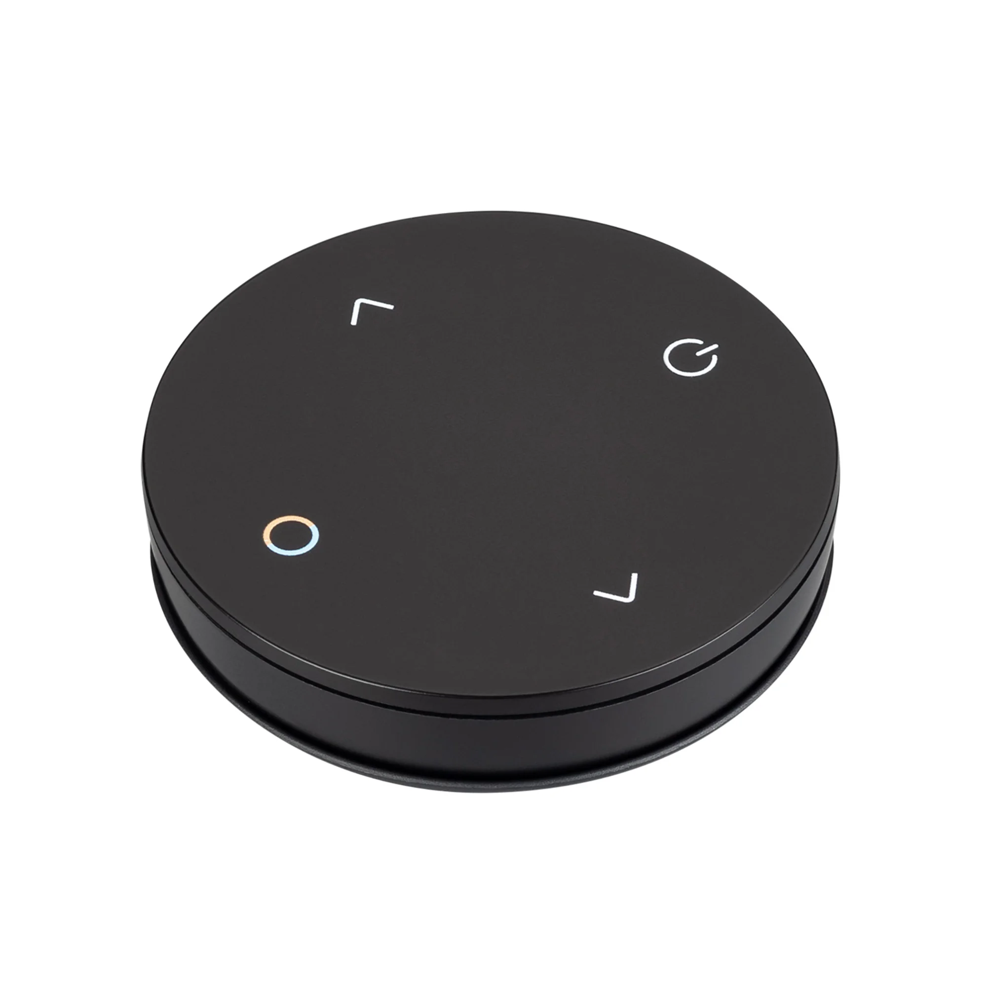 Кнопочный радиопульт 2.4 ГГц чёрного цвета для управления одноцветными (DIM) источниками света. 1 зона управления. Питание 3VDC (CR2032). Габариты 75x75x18 мм. Изготовлен из пластика с покрытием, защищающим от загрязнения. Магнитная основа. Управляет контроллерами и панелями серии SMART (поставляются отдельно).