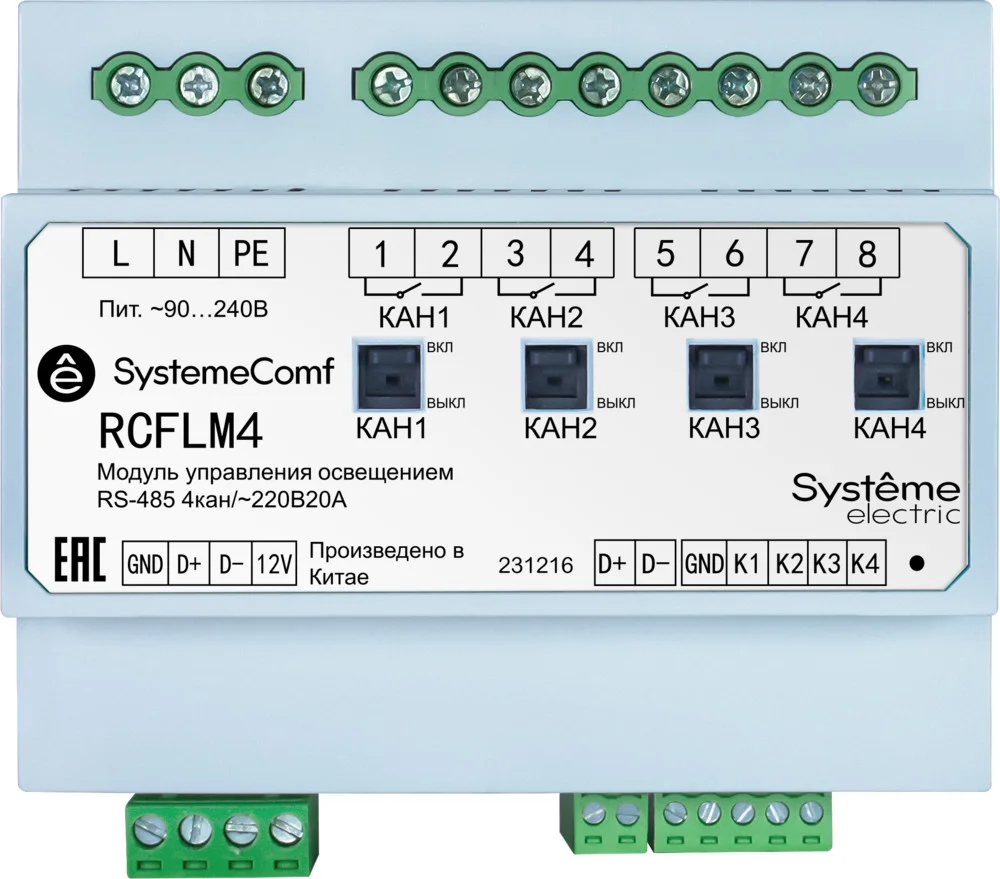 Модуль управления освещением SystemeComf, управление 4 группами освещения типа ВКЛ/ВЫКЛ, подходит для светодиодных светильников, 4 релейных выхода DO с коммутацией напряжения до 240 В переменного тока, максимальным током резистивной нагрузки 20 А, максимальным импульсным током до 500 А / 2 мс, порт RS-485 для подключения к контроллеру, на передней панели имеются переключатели ручного управления с […]