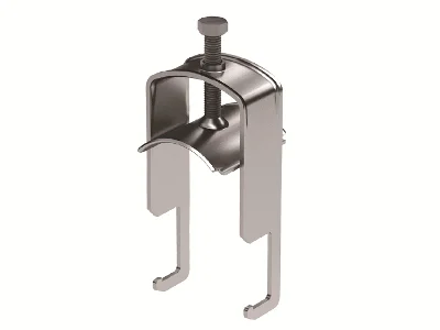 Крепеж фиксируется на балке сверху и предназначен для крепления кабелей или труб при помощи хомута. Изделие предназначено для балок толщиной от 1,5 до 5 мм.