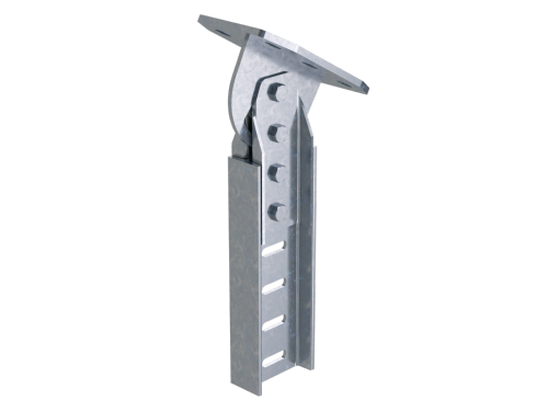 Шарнирное крепление к потолку BSF-50 применяется для подвеса кабельной трассы, если ее необходимо разместить под углом; монтаж профилей ВРМ-50. Шарнир позволяет легко регулировать угол. Толщина соединительной пластины — 4 мм. В комплект поставки входит основание, две соединительные пластины, 4 болта М12х30 классом прочности 8.8, 4 гайки М12 классом прочности 8 и 4 шайбы 12. Противокоррозионное […]