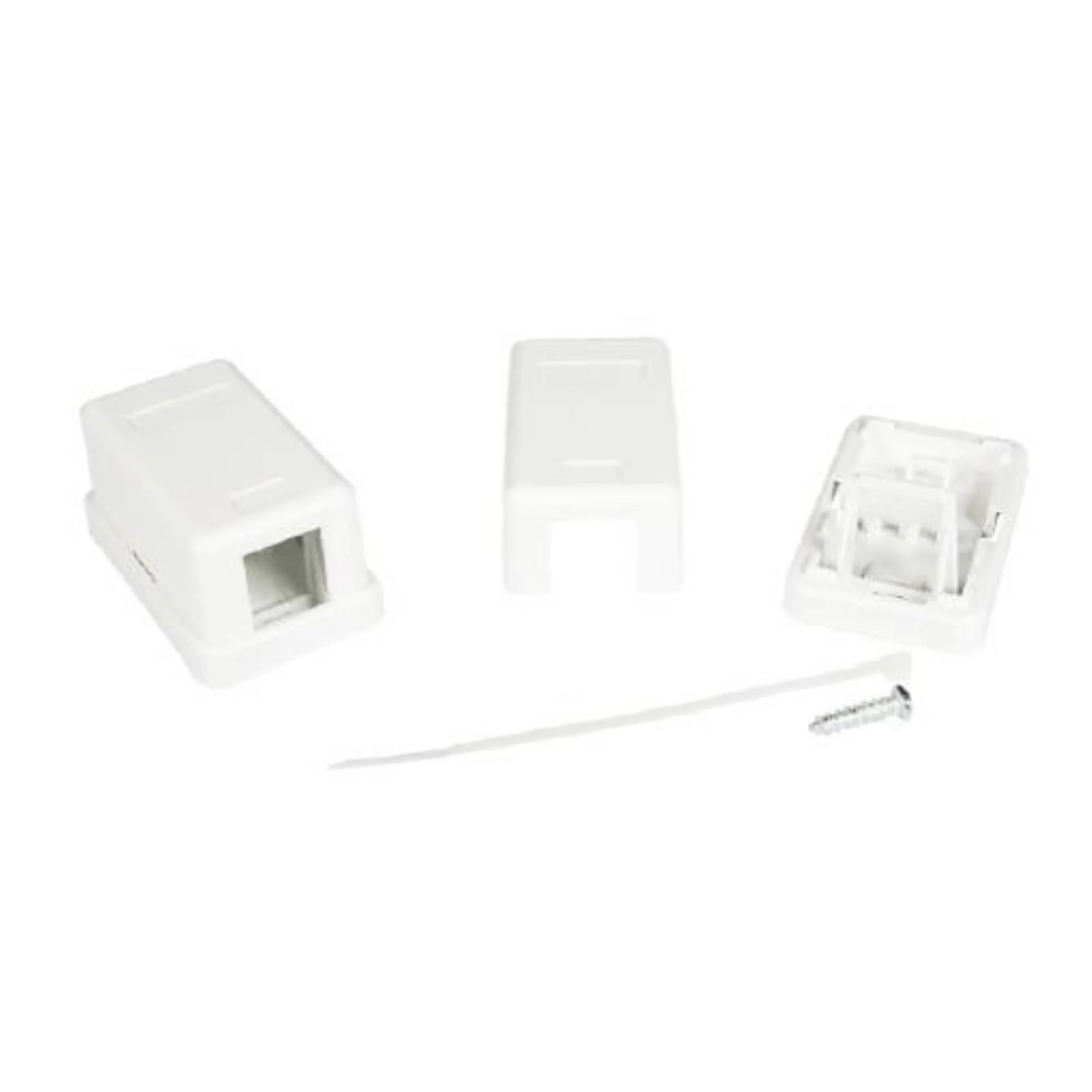 Накладная 1-портовая неэкранированная розетка категории 5е. Для применения в технических и служебных помещениях. Модули 8Р8С предустановлены. Кабели заделываются инструментом типа 110.