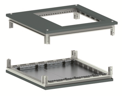 Комплект оцинкованной рамы крыши и дна для соединения с вертикальными стойками и сборки напольных шкафов CQE N шириной 600 и глубиной 400 мм. Юбка дна окрашена в цвет RAL 7011.