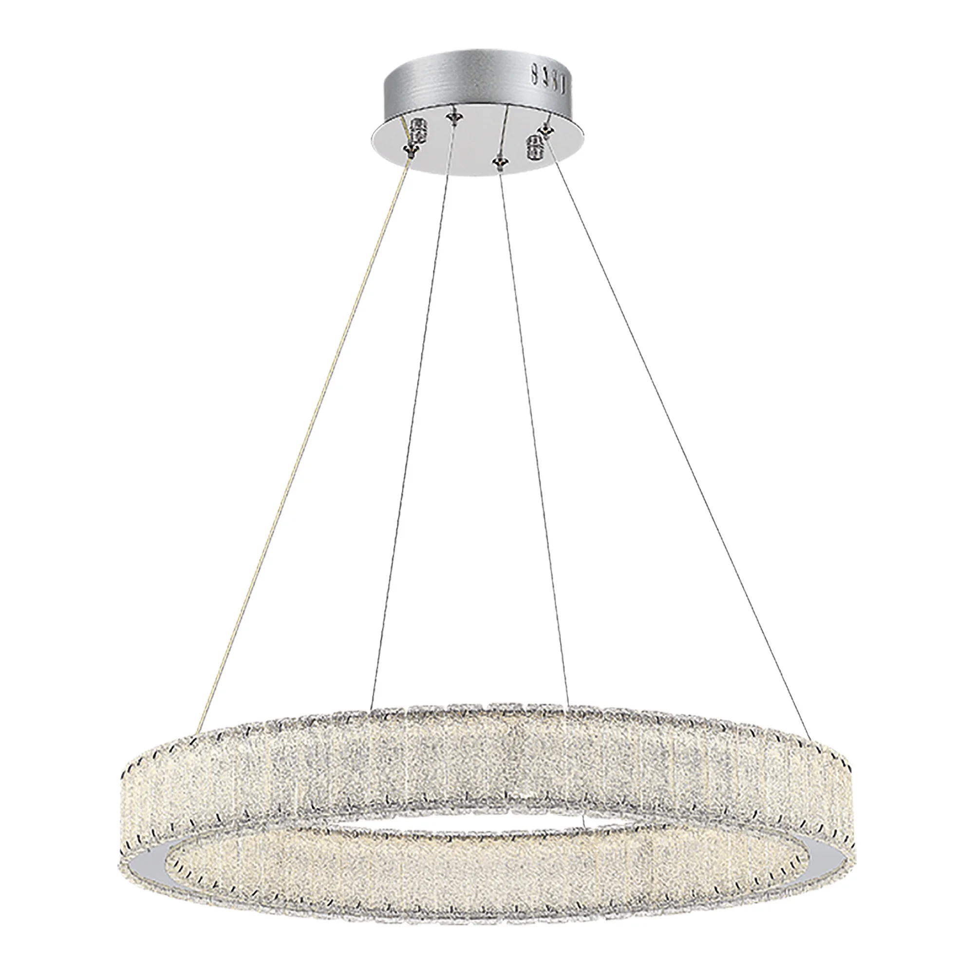 Кольца Latozzo декорированные стеклом, напоминающем льдинки, прекрасно справятся с задачей основного освещения в современном интерьере. Металлические элементы в цвете хром придают коллекции строгость и легкость одновременно. В дополнение к подвесным светильникам в коллекции представлены бра в двух размерах.