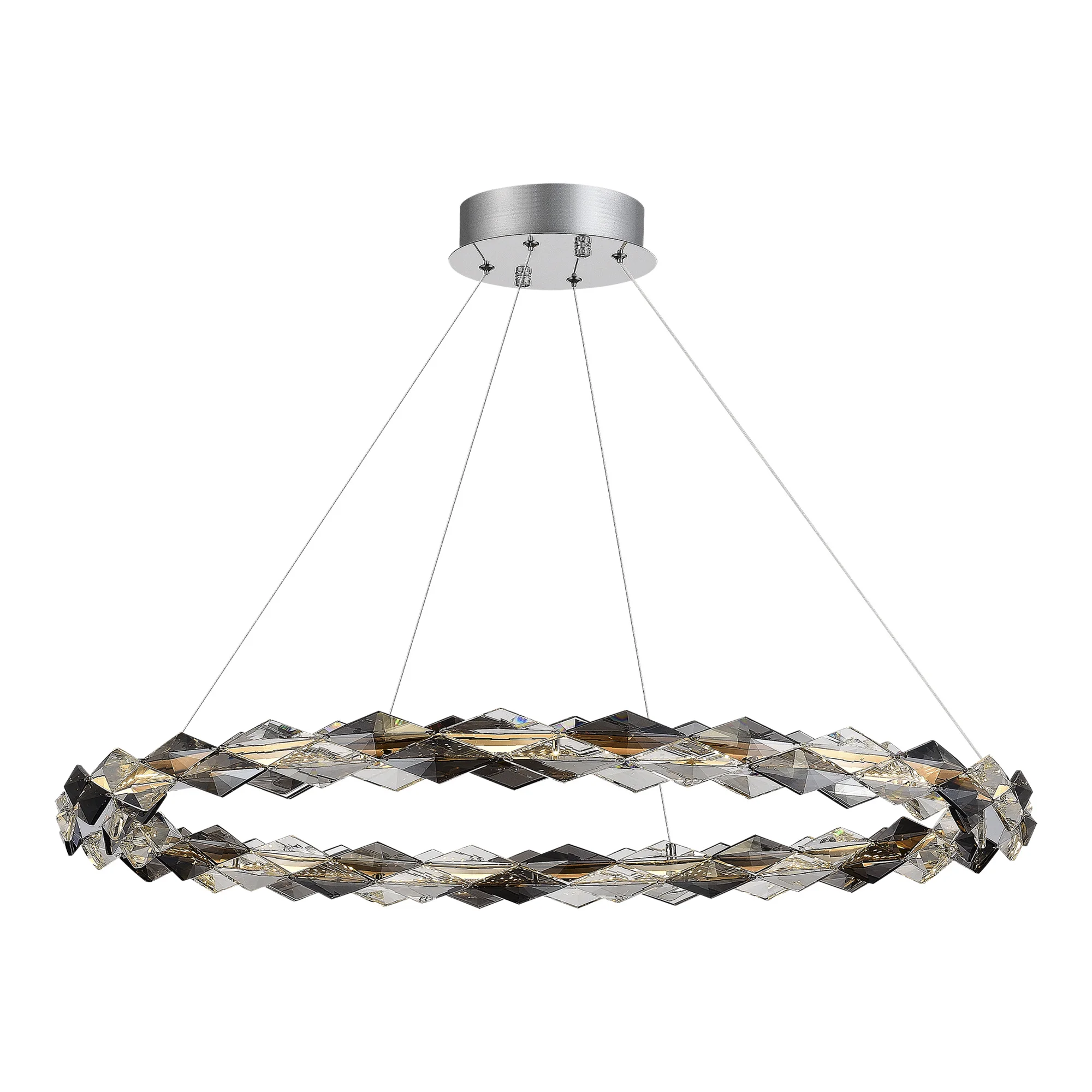 Сочетание тонированного и прозрачного стекла в форме ромбов придает стильную роскошь этим светодиодным кольцам. Два цветовых сочетания: янтарное стекло и золото, дымчатое стекло и хром позволяют вписать коллекцию Diamanta в любой интерьер.