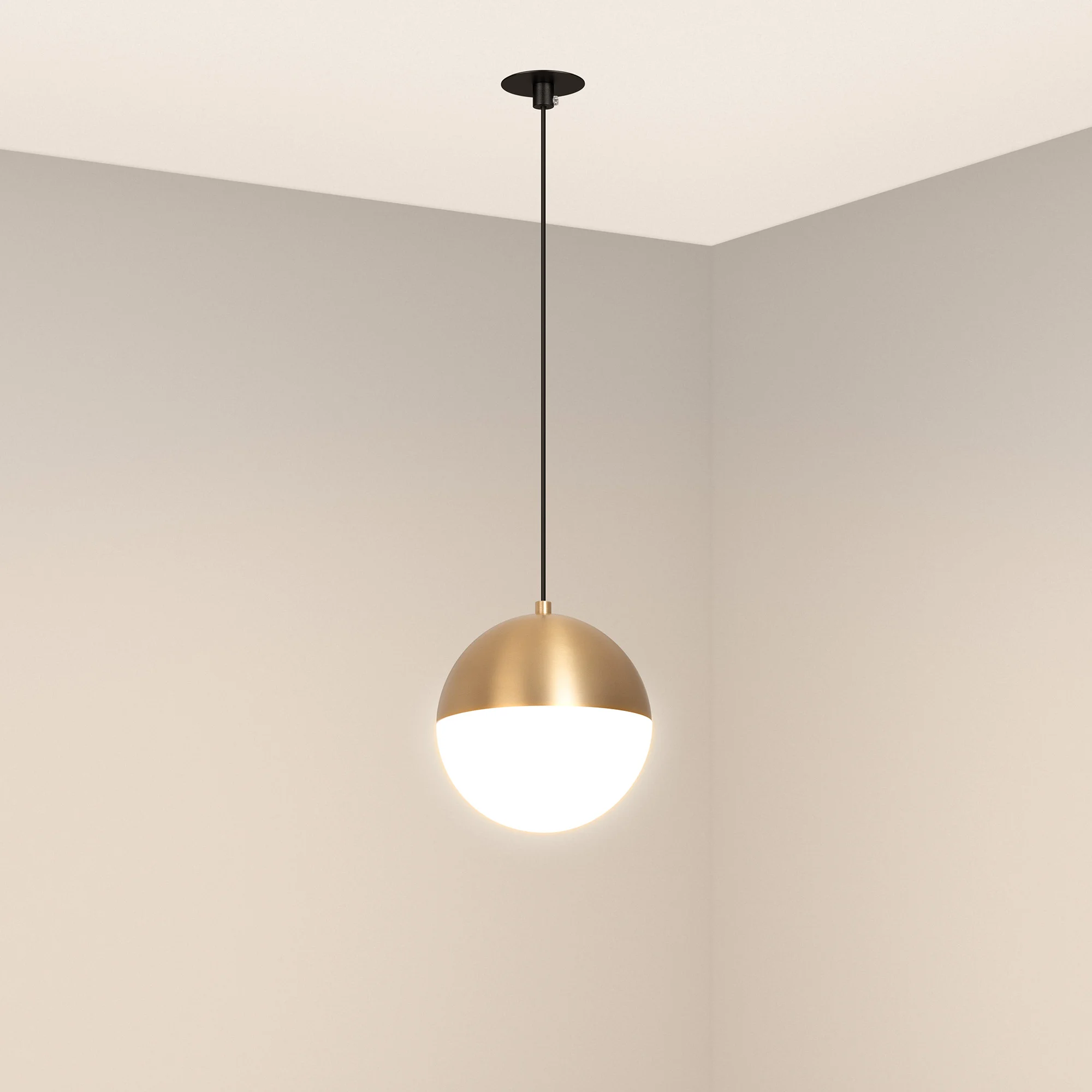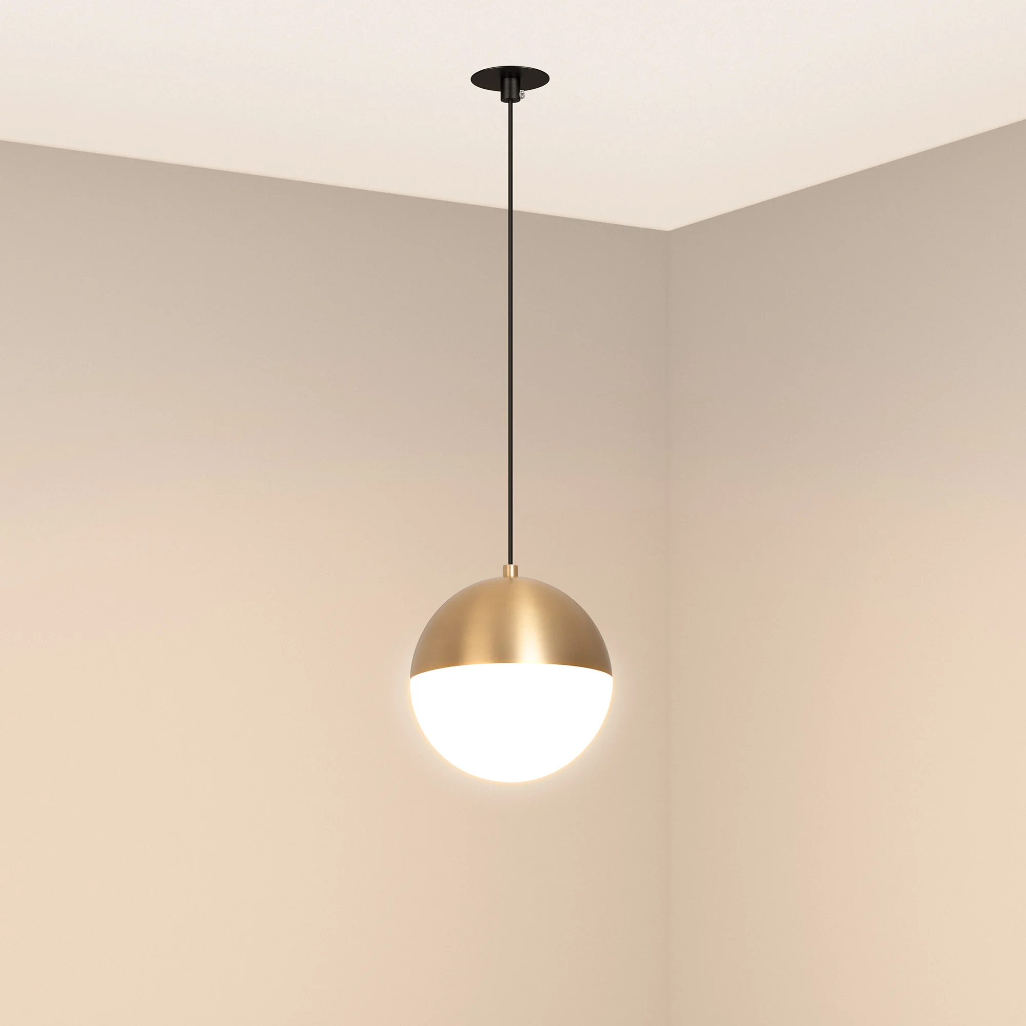 Светильник подвесной. Мощность 11 Вт, св. поток 960 лм, 80 лм/Вт, теплый 3000 K, CRI>90, угол 170°, напряжение питания 230 В. Золотой корпус из алюминия, материал плафона стекло, степень защиты IP20. Размер: диаметр 150 мм, длина подвеса 1500 мм. Потолочная чаша встраиваемая, черного цвета. Размеры Ø 60×40 мм. Размер врезного отверстия Ø 50 мм. Драйвер […]