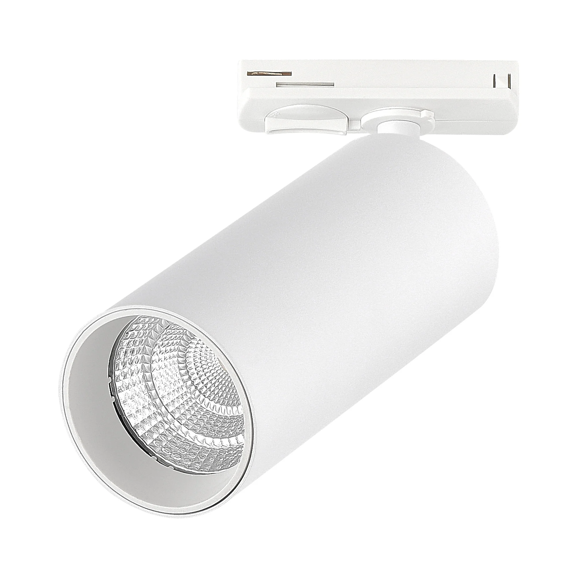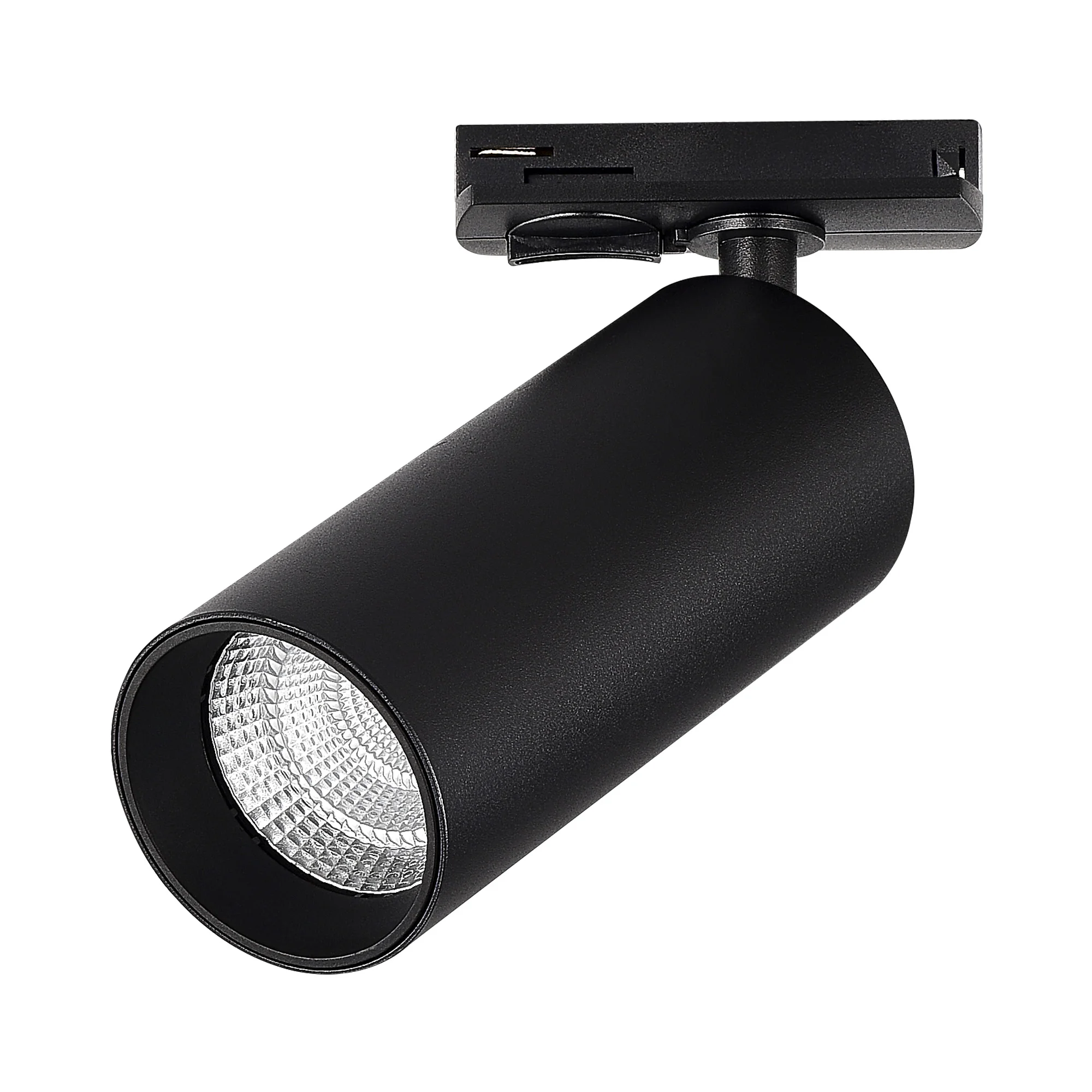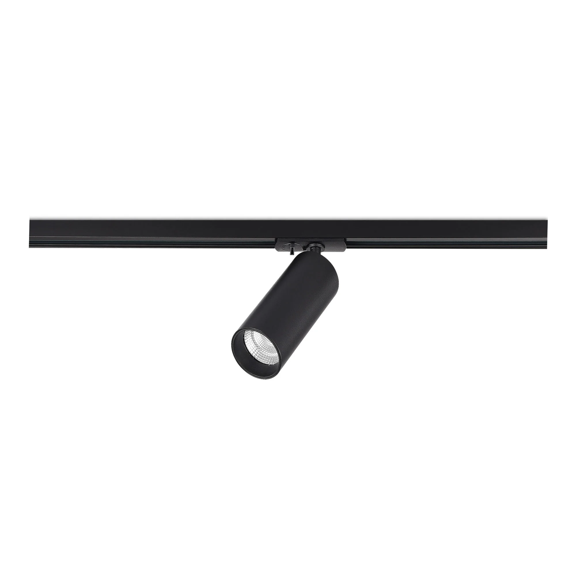 Светильник поворотный для магнитных треков шириной 25 мм, 7 Вт. Цвет свечения дневной 4000K, световой поток 410лм, изменяемый угол излучения 20-55°, CRI>90. Корпус цилиндрический, металл, цвет черный, IP20. Размеры LxWxH 128x35x105 мм. Входное напряжение DC24V, мощность 7 Вт. Драйвер DС24V/AC230V поставляется отдельно.