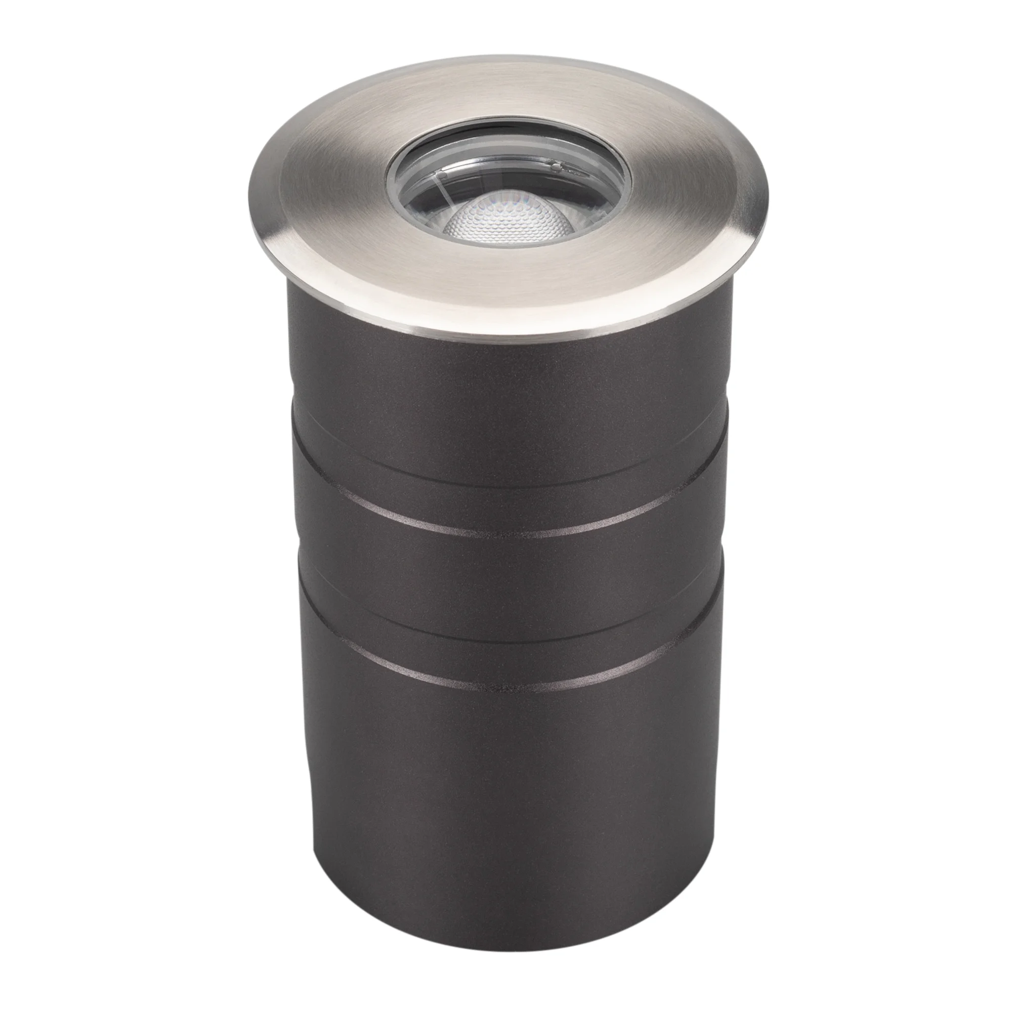 Встраиваемый светодиодный светильник для грунта и пола. Мощность 6Вт, световой поток 327лм, цвет ТЕПЛЫЙ 3000К. CRI(Ra)>80, угол 24°. Круглый влагозащищенный корпус IP67, нержавеющая сталь. Экран закалённое стекло. Питание AC100-245V, 6Вт. Размер DxH Ø65×110мм. Установка в отверстие DxH Ø53×110мм.