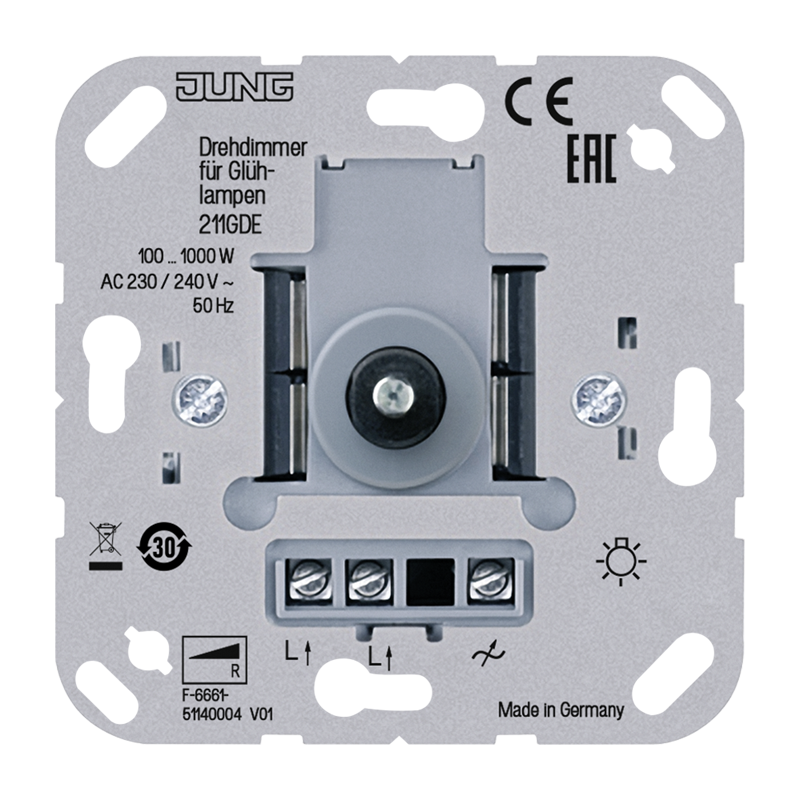 JUNG Мех Светорегулятор поворотно-нажимной 100-1000 Вт для л/н