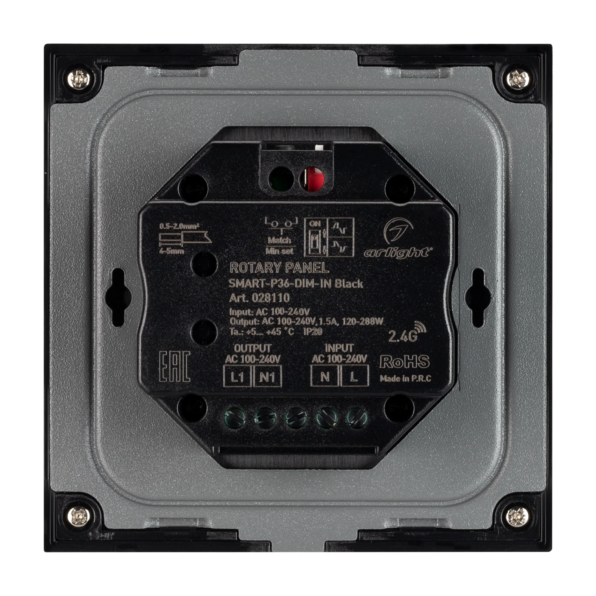 Arlight Панель SMART-P36-DIM-IN Black (230V, 1.2A, TRIAC, Sens, 2.4G) (IP20 Пластик, 5 лет)