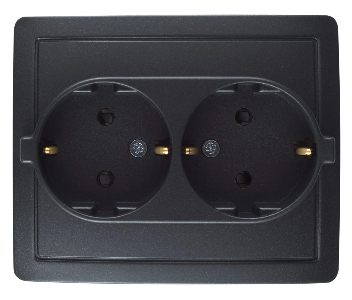 Розетка Systeme Electric (ранее Schneider Electric) BLANCA (титан, открытой установки) двухместная, без заземления, со шторками и изолирующей пластиной предназначена для сетей до 250В, на ток до 16А. Двухместная розетка позволяет подключить два устройства в одном месте. Шторки обеспечат дополнительную безопасность в помещении, где находятся дети.