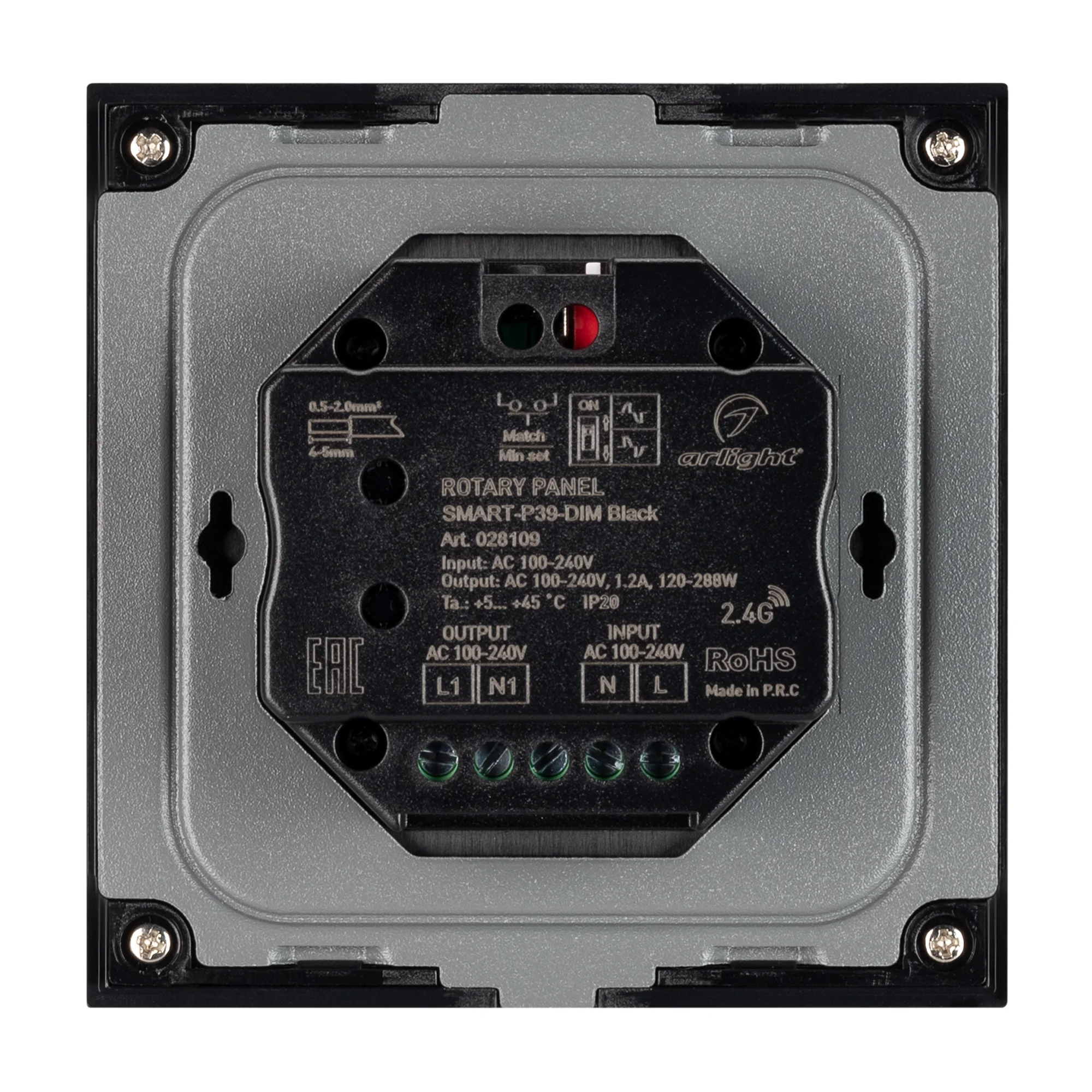 Arlight Панель SMART-P37-DIM-IN Black (230V, 1.2A, TRIAC, Rotary, 2.4G) (IP20 Пластик, 5 лет)