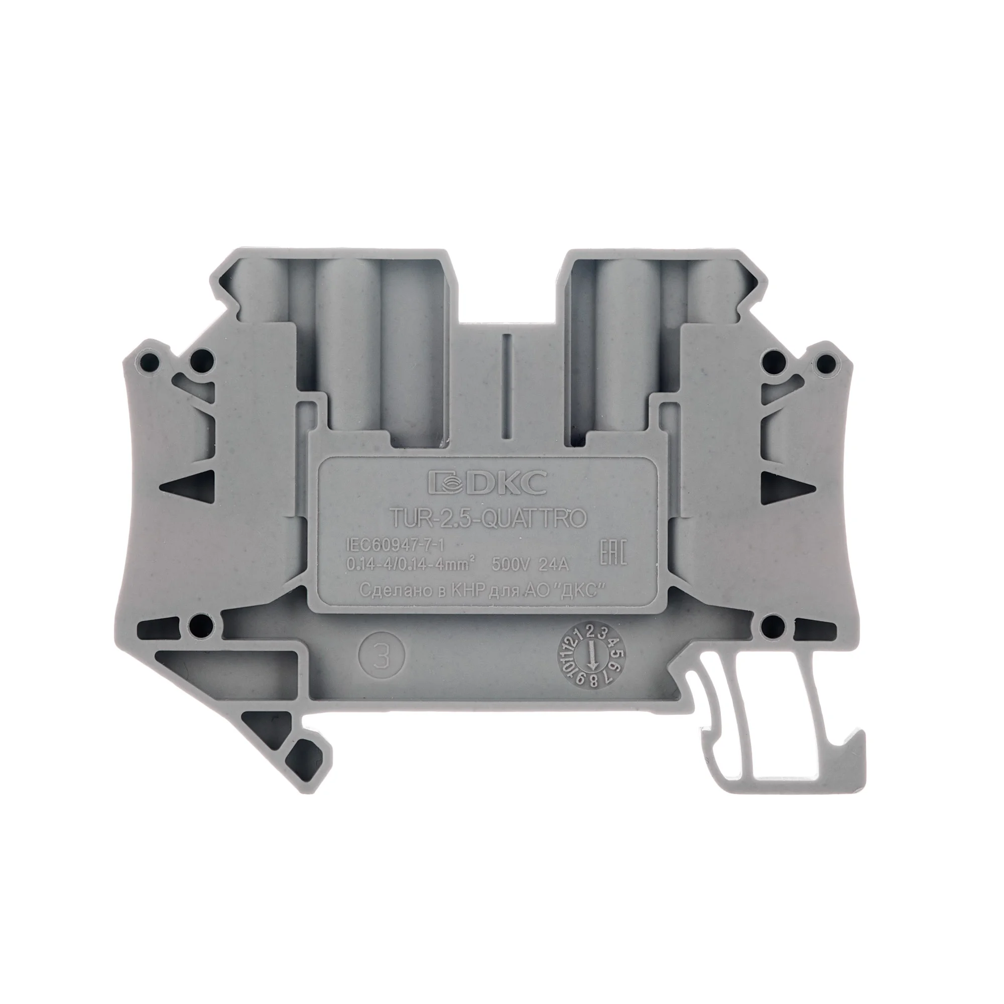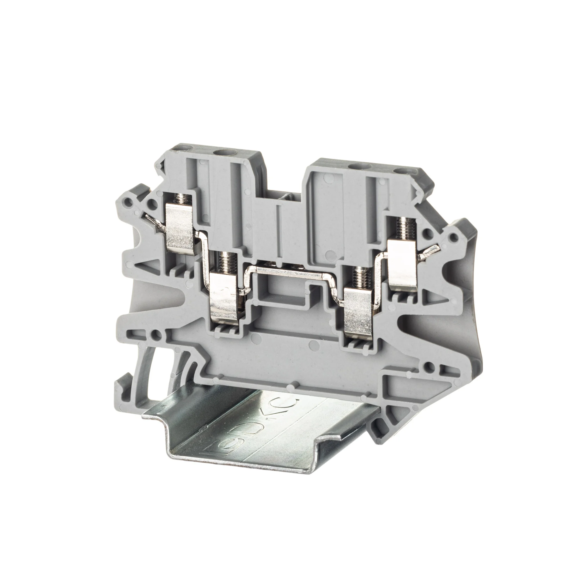 Проходная клемма с винтовым зажимом предназначена для соединения четырех проводников. Монтаж на DIN-рейку OMEGA. Температура эксплуатации от -40 до +105°C. Корпус выполнен из ПА 6.6 с классом горючести V0 UL-94. Серый цвет, 4 точки подключения, 2.5 мм². 2 канала для вставных перемычек. Габариты (В×Ш×Г) 47,5×65,4×5,2 мм.