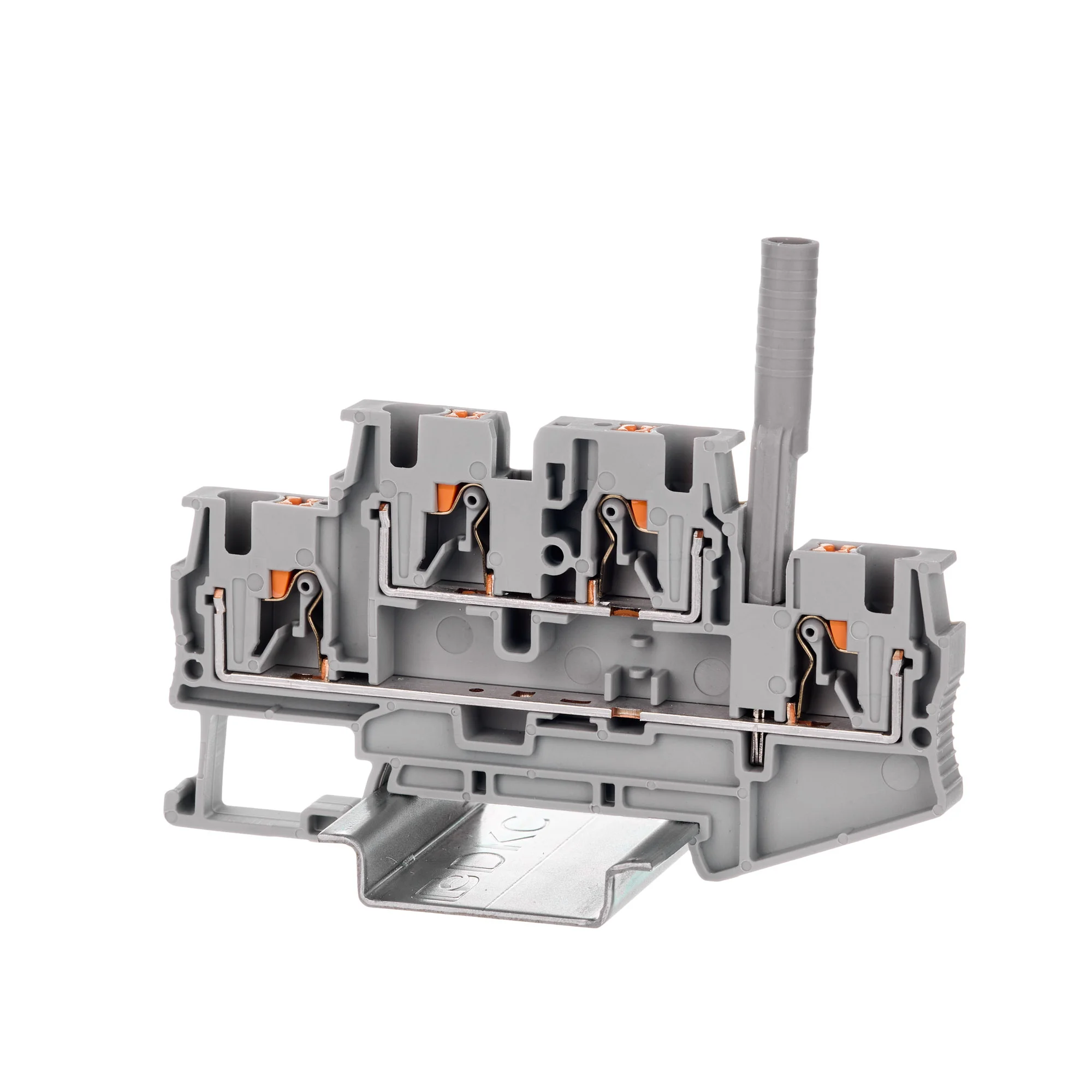 Адаптер для тестового щупа монтируется в канал для перемычек винтовых и Push-in клемм номинального сечения до 10 мм² для быстрого и безопасного измерения напряжения с помощью тестового щупа. Материал – полиамид, луженая медь, цвет – серый.