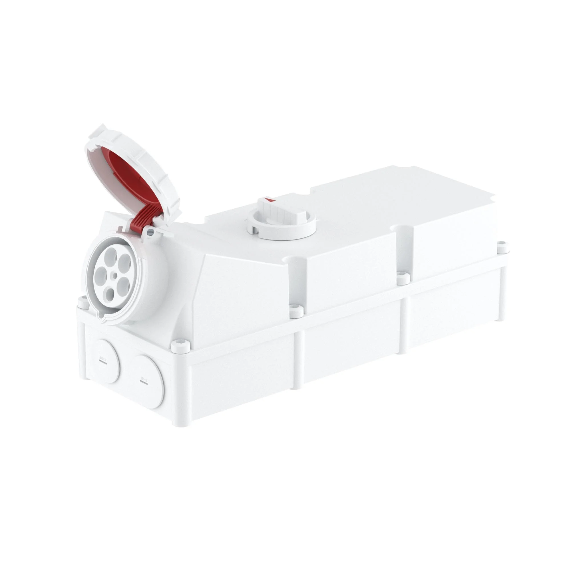 Розетка настенного типа с механической блокировкой и боковым расположением разъема. Применяется для организации точки подключения повышенной безопасности. Предотвращает подачу питания при отсутствии нагрузки и разъединение контакта под нагрузкой. Рассчитана на рабочее напряжение номиналом 400В; ток — 125А; степень защиты — IP66/67; контакты — 3P+N+E; GWFI +960°С; цвет — красный. Розетка имеет винтовой зажим. Промышленные разъемы […]