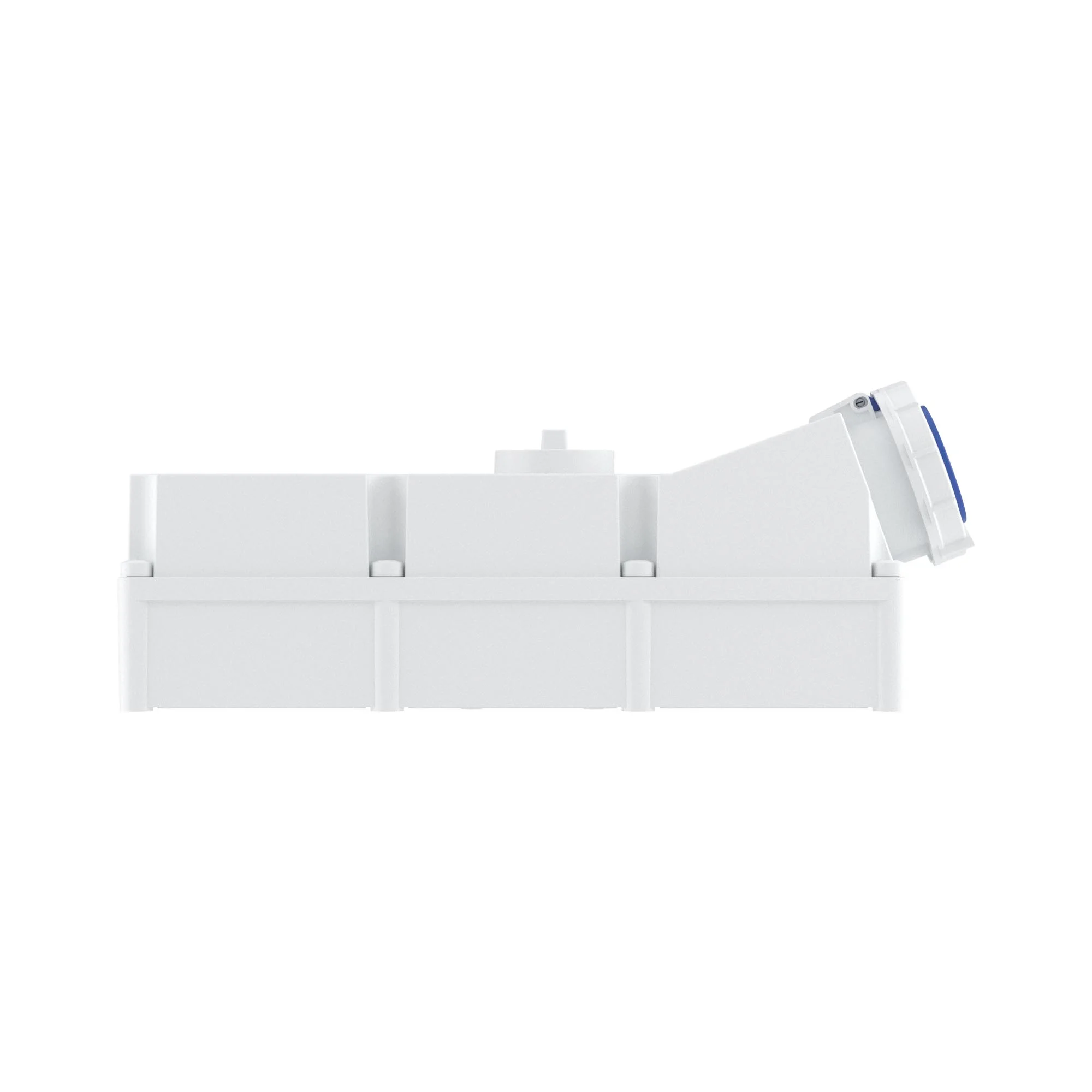 Розетка настенного типа с механической блокировкой, с возможностью установки модульного оборудования. Применяется для организации точки подключения повышенной безопасности. Предотвращает подачу питания при отсутствии нагрузки и разъединение контакта под нагрузкой. Рассчитана на рабочее напряжение номиналом 230В; ток — 63А; степень защиты — IP66/67; контакты — 2P+E; GWFI +960°С; цвет — синий. Розетка имеет винтовой зажим. Промышленные […]