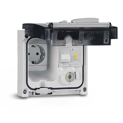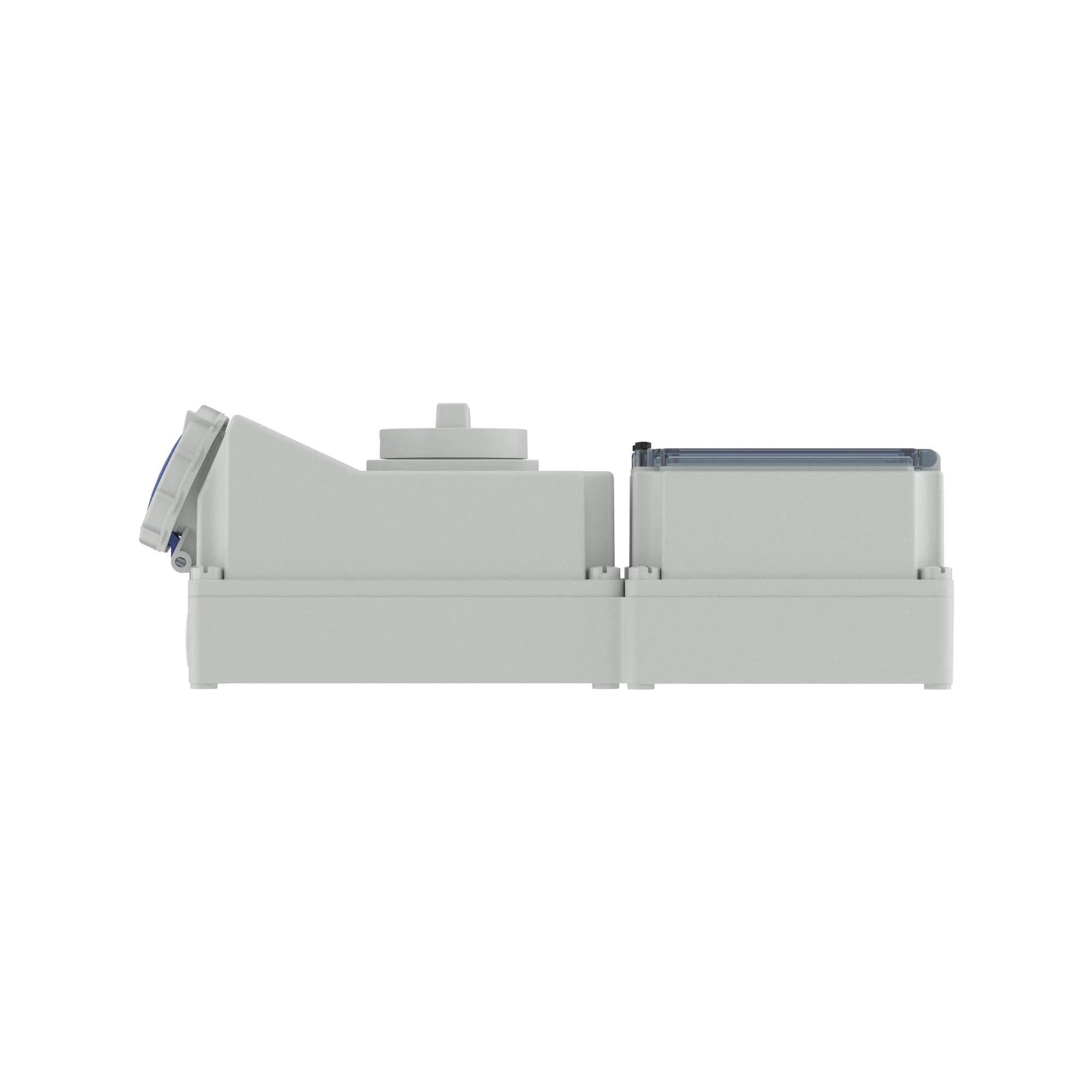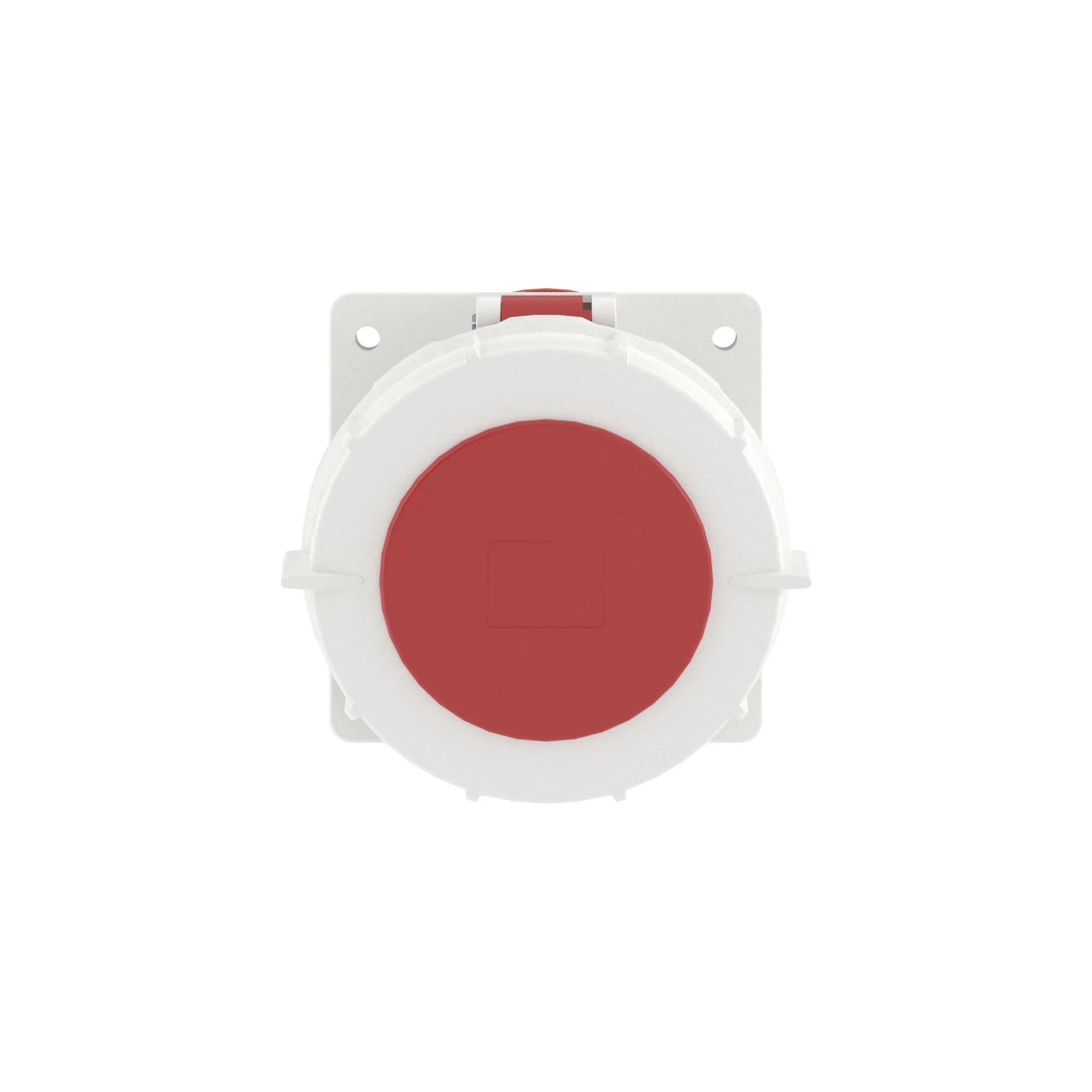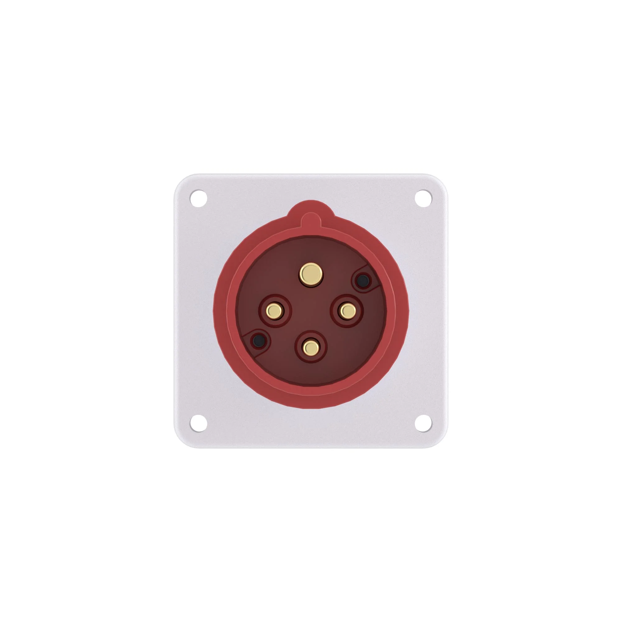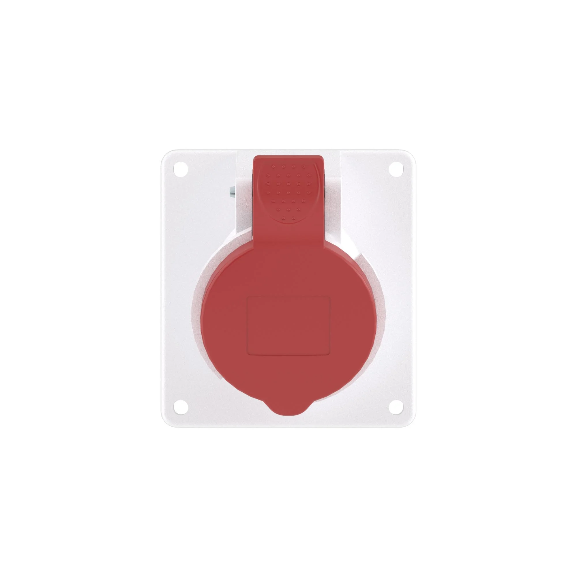 Силовая розетка с повышенной защитой от проникновения воды/пыли стандарта DIN 49440. 250 В. Тип 2P+E. Ток 16А. Размер основания 136×125 мм.