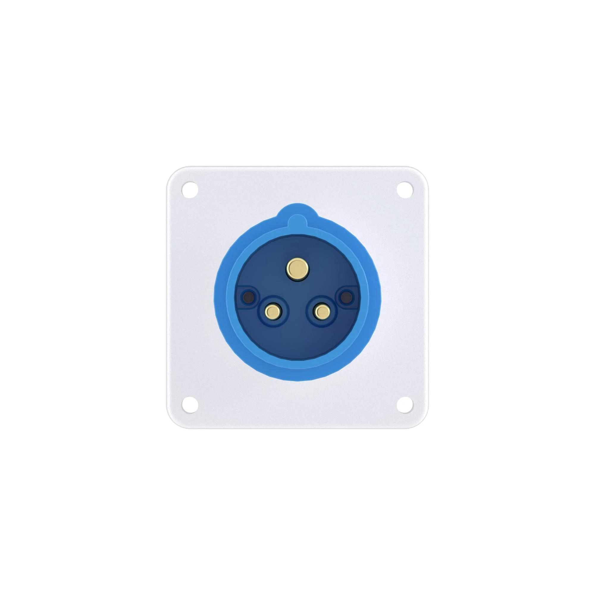 Розетка настенного типа с механической блокировкой, с возможностью установки модульного оборудования. Применяется для организации точки подключения повышенной безопасности. Предотвращает подачу питания при отсутствии нагрузки и разъединение контакта под нагрузкой. Рассчитана на рабочее напряжение номиналом 230В; ток — 16А; степень защиты — IP44; контакты — 2P+E; GWFI +960°С; цвет — синий. Розетка имеет винтовой зажим. Промышленные […]